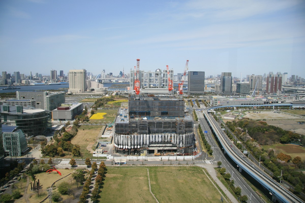 正面で建設中の建物がちょっと邪魔ですが、フジテレビが正面に見えます。