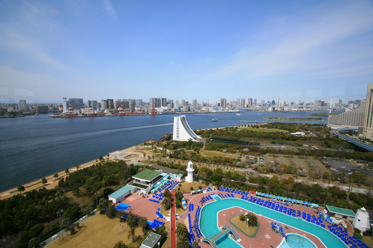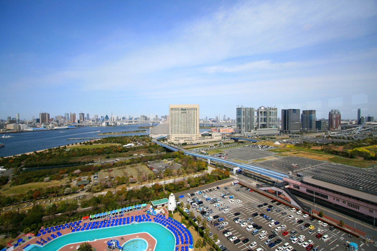芝浦アイランドからレンボーブリッジ、お台場まで。ガラガラの駐車場が目立ちます。 | |