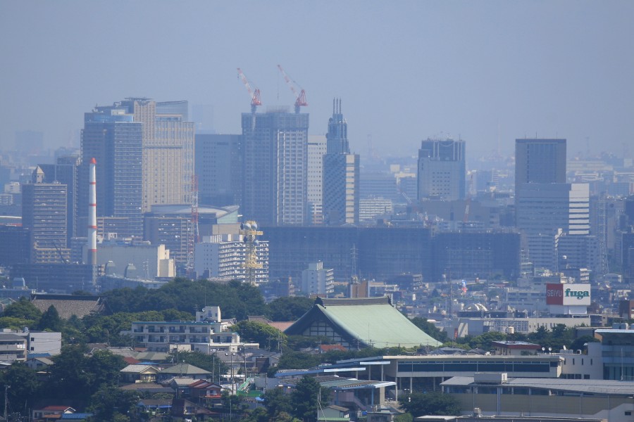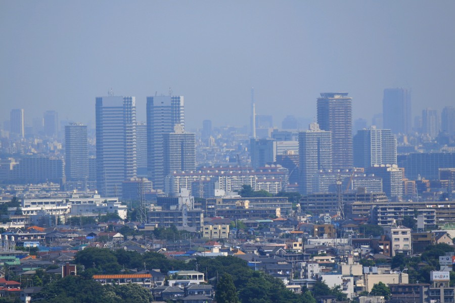 川崎方面です。超高層ビルやタワーマンションが重なりあっていて解説も出来ない状態です。2年後にはブリリアタワー川崎(地上34階、高さ117.5m)もこの景色の仲間になっています。 このようにオルトヨコハマビュータワーからだと超望遠のレンズを使っても、小杉、川崎でこの程度しか見えません。もうちょっと近くで見えると思っていたんですけどね。。 |