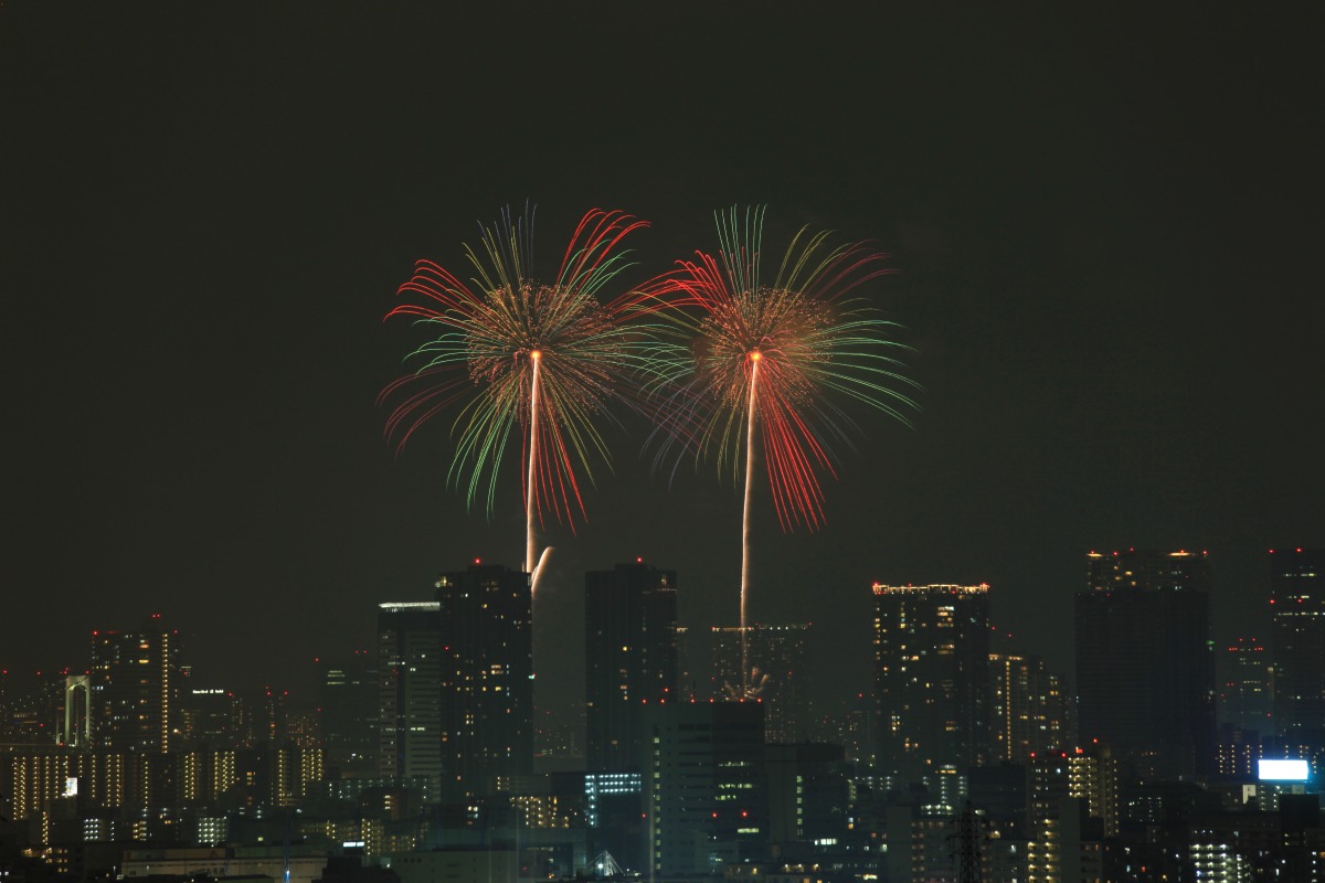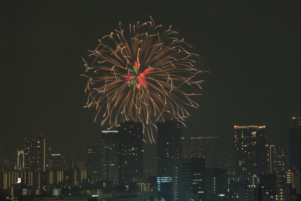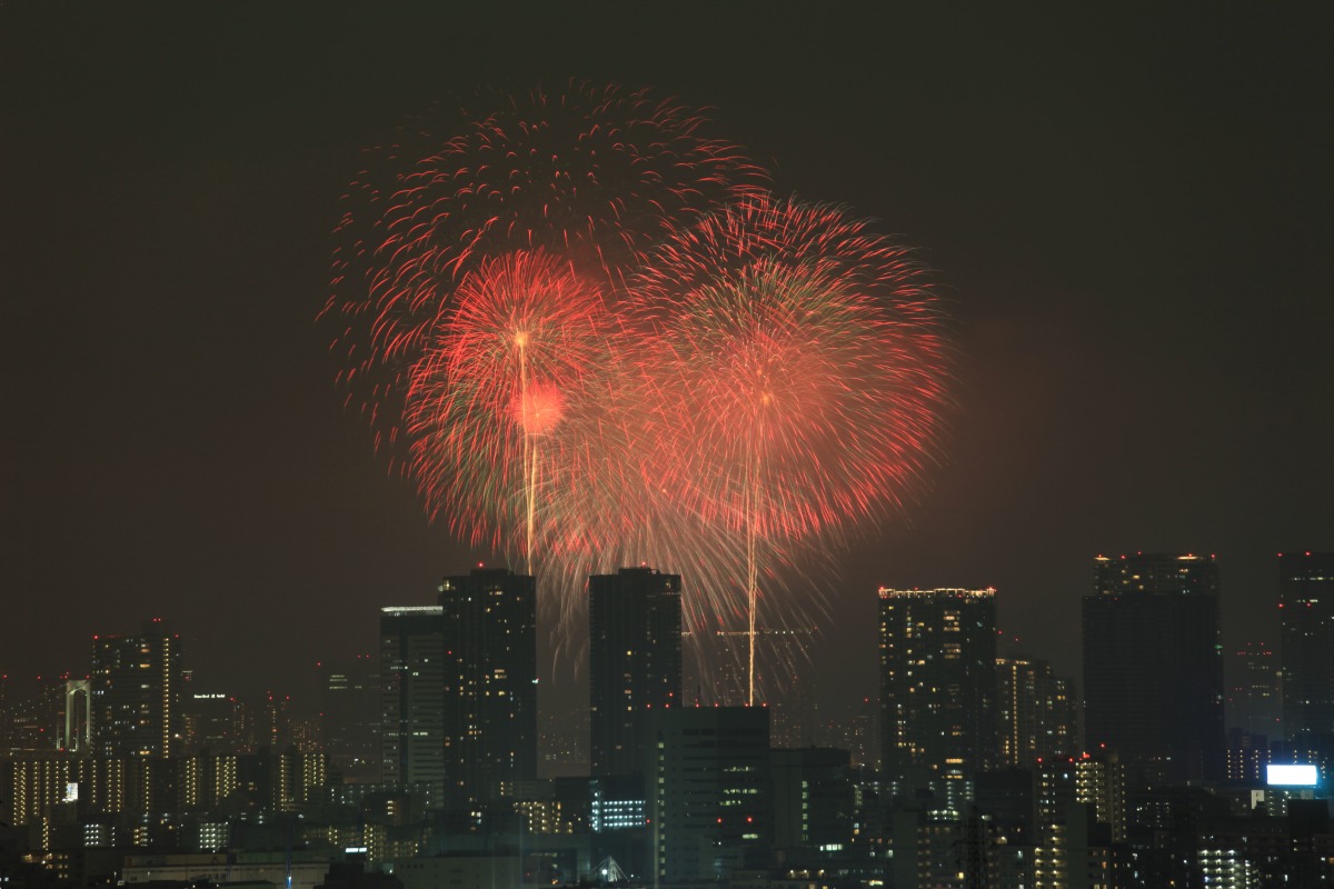 ただ、「シティタワーズ豊洲」など ここ最近建ち上がったタワーマンションが もっと花火を遮るものだと思っていたので ここれだけ見えれば満足です。 |