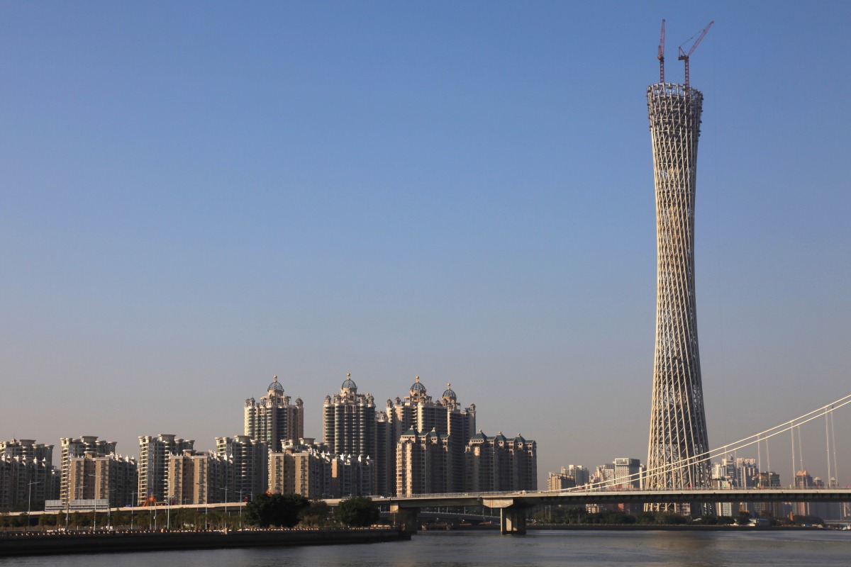 自立式電波塔として世界一というわけですが 現在、ライバルと思われるのは 中国・広州の「広州テレビ・観光塔」です。 ※ 昨年の写真なのでちょっと古いです… 「広州テレビ・観光塔」の高さは610mですが 細かい数字を見ると「東京スカイツリー」の方が 当初の計画でも微妙に高かったようです。 しかし618mにかさ上げされるという噂もあったりしたので 「東京スカイツリー」は世界一の座を死守するために 高さを大きく伸ばして来たのかもしれません。 同じ610mならちょこんとアンテナを足せば越えてしまいすしね。 |