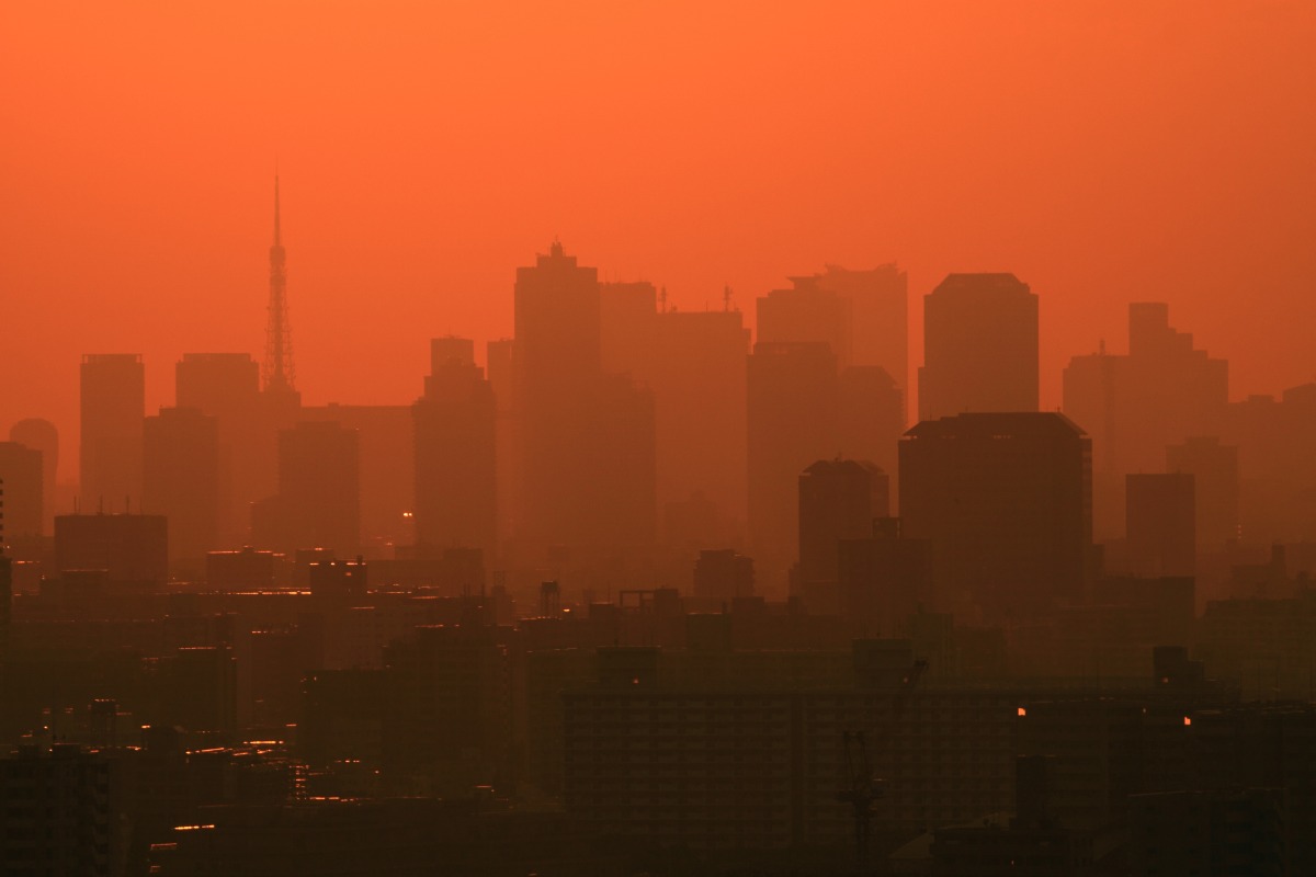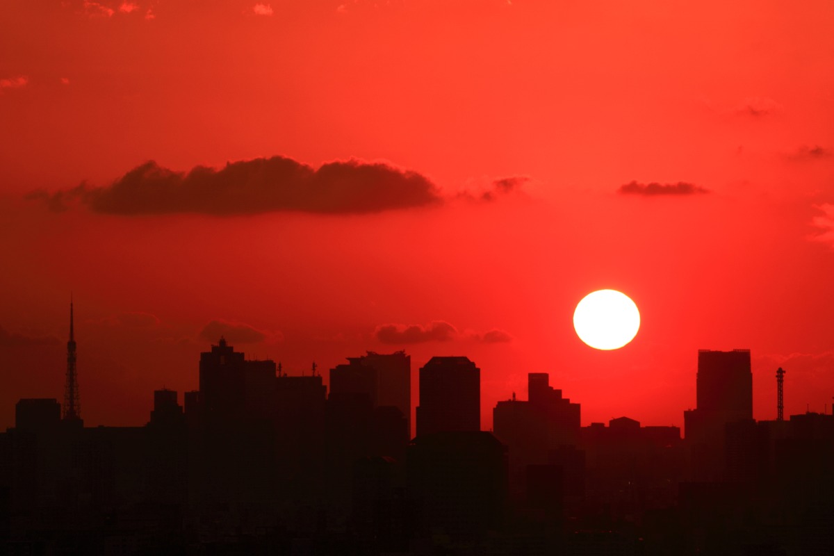 一週間くらい前の自宅マンションから見た東京夕景です。 もうすぐ太陽が東京タワーに串刺しになります。 |
