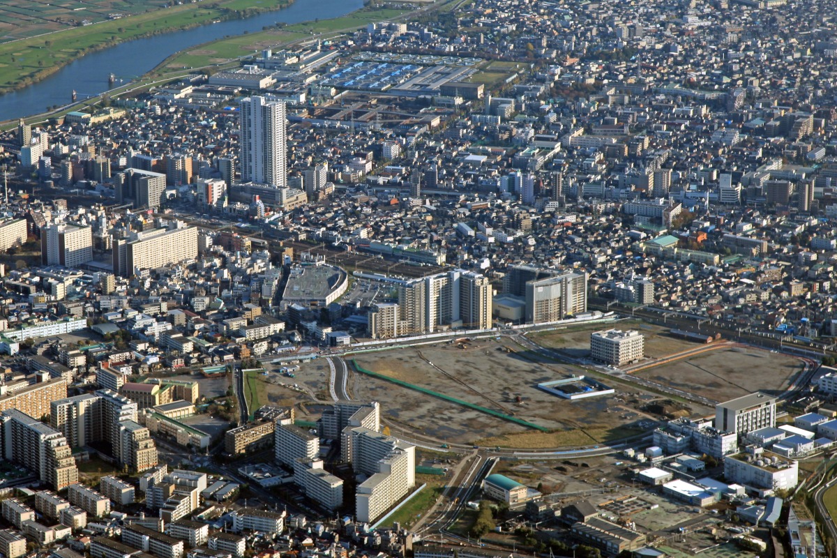東京都葛飾区の「金町駅」周辺の空撮です。 左上に見える白いタワーマンションが「金町駅前」に建つ 「ヴィナシス金町タワーレジデンス」(地上41階、高さ138.2m)です。 「金町駅」は「JR常磐線」の「金町駅」と 「京成金町線」の「京成金町駅」があります。 左右に伸びる路線が「JR常磐線」で 右上に伸びる路線が「京成金町線」です。 そんな「京成金町線」沿線に浄水場が見えると思いますが そのちょっと先が寅さんで有名な「柴又駅」です。 右下の広大な空き地沿いに建つちょっと大きなマンションが 「プラウドシティ金町ガーデン」(地上19階、高さ59.97m)です。 また、その広大な空き地は「新宿6丁目地区開発エリア」という 「三菱製紙中川工場」の跡地の再開発エリアで 東京理科大学や公園、マンションなどが出来るようです。 ちなみに「新宿」と書いて「にいじゅく」と読みます。 今晩にでもブログのコメントの返信が出来れば… と思っています。 そんな本日もポチっとお願い致しますm(__)m ⇒ ここをクリック |