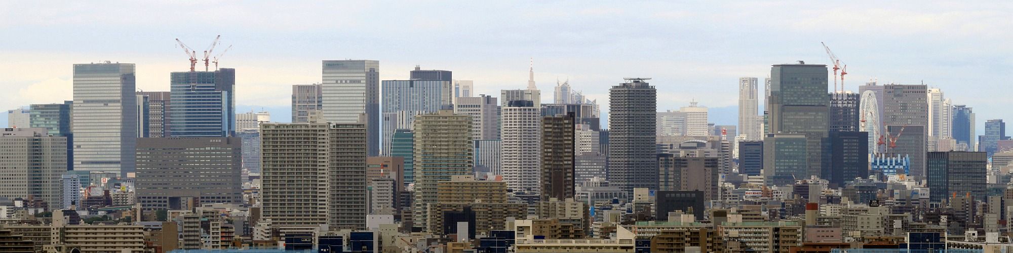 自宅でもあるUR賃貸のタワーマンション 「船堀駅前トキタワー」(地上27階、高さ91m) の自室から見た東京駅周辺の超高層ビル群です。 ※ 望遠で撮影した3枚の写真を繋げています。 ※ 画像クリックで2000x500のサイズで見ることが出来ます。 大雑把に左側が東京駅周辺で丸の内 右側が大手町、右奥が新宿です。 そのほかにも日本橋、人形町、浜町、白河 などの超高層ビルやタワーマンションも写っています。 東京駅周辺は皇居の都合もあって 高くても200mくらいまでの超高層ビルしかありませんが これだけ揃うとなかなか壮観ですね。 タワークレーンが見えているところ以外にも 建設中、もしくは建設が決定しているところがまだまだあります。 これからの発展が楽しみです。 |