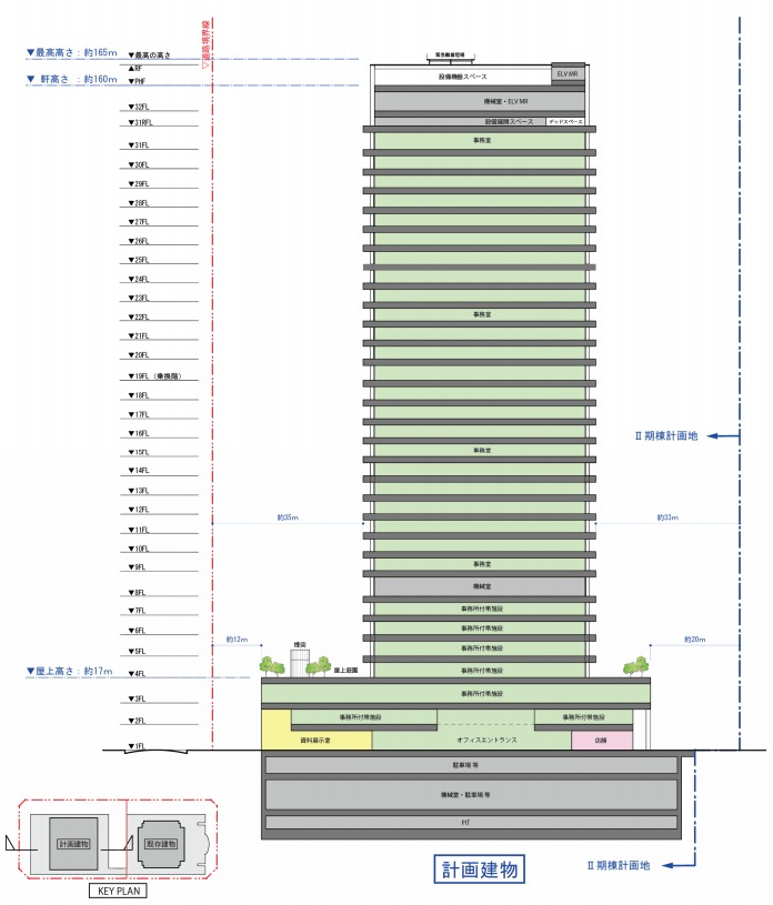 ¤³¤ì¤Ï¡Ö»°É©½Å¹©²£ÉÍ¥Ó¥ë¡×(ÃϾå33³¬¡¢¹â¤µ151.9m)¤ÎÎÙ¤Î(Ìð°õÉôʬ)¤Î³«È¯·×²è¤Ç