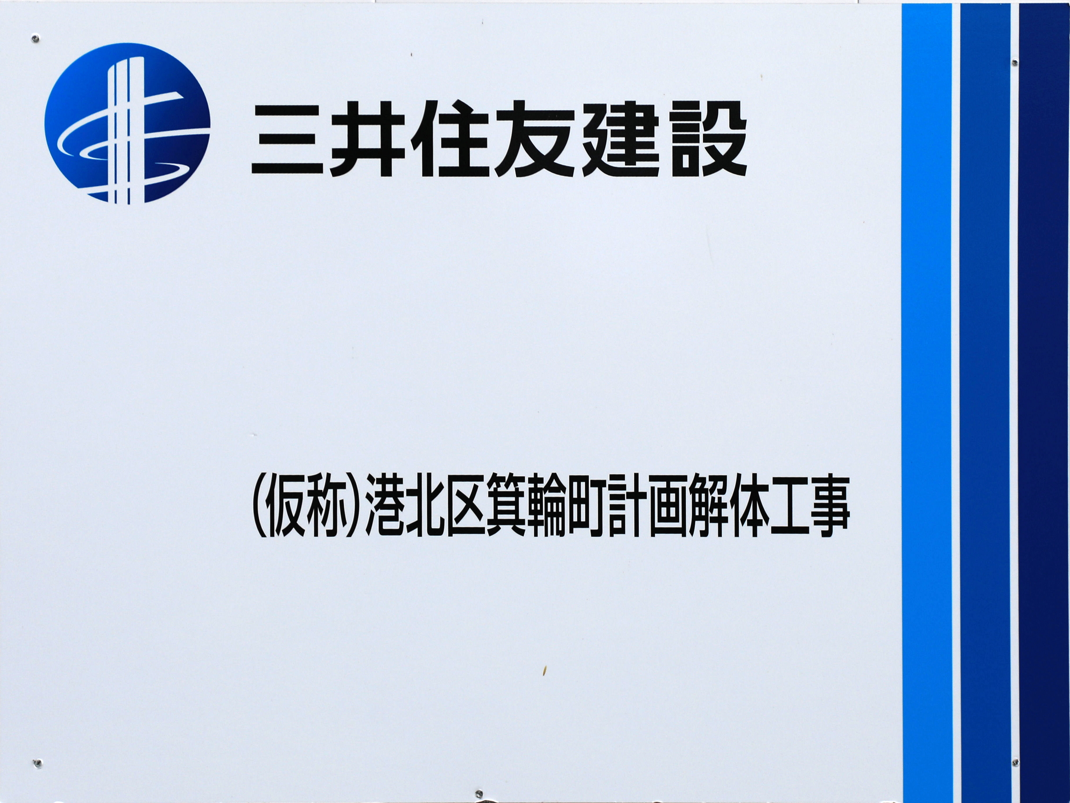 「(仮称)港北区箕輪町計画解体工事」として三井住友建設の看板が設置されていました。