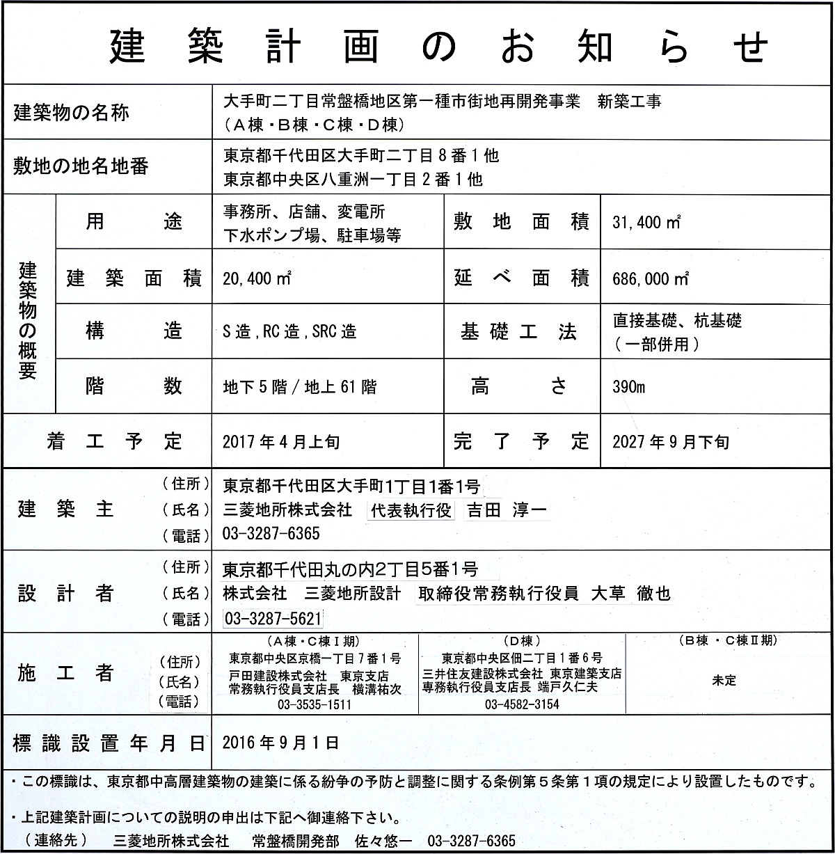 ¡¡º¸Ã¼¤Î¡ÖÄ«ÆüÀ¸Ì¿Âç¼êÄ®¥Ó¥ë¡×(ÃϾå29³¬¡¢ºÇ¹â¹â¤µ119m)¤ÈÃæ±û±ü¤Î¡ÖÆüËÜ¥Ó¥ë¡×¤¬·ú¤Ã¤Æ¤¤¤ë¾ì½ê¤¬ÃϾå61³¬¡¢¹â¤µ390m¤È¤Ê¤ëBÅï¤Î·úÀßÃϤǤ¹¡£BÅï¤ÎÃ幩¤Ï2023ǯÅ٤ȤޤÀ¤Þ¤ÀÀè¤Ç¤¹¡£