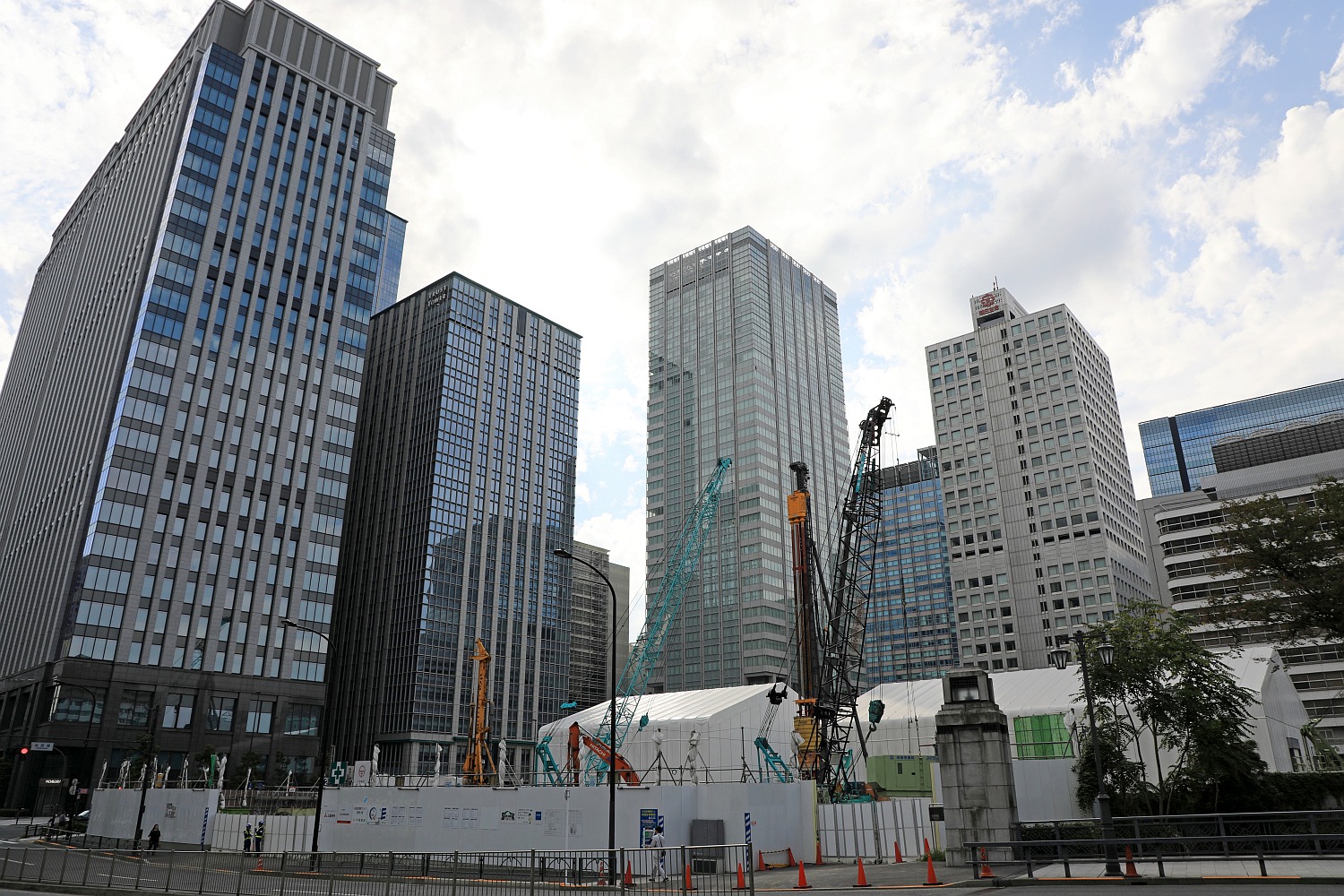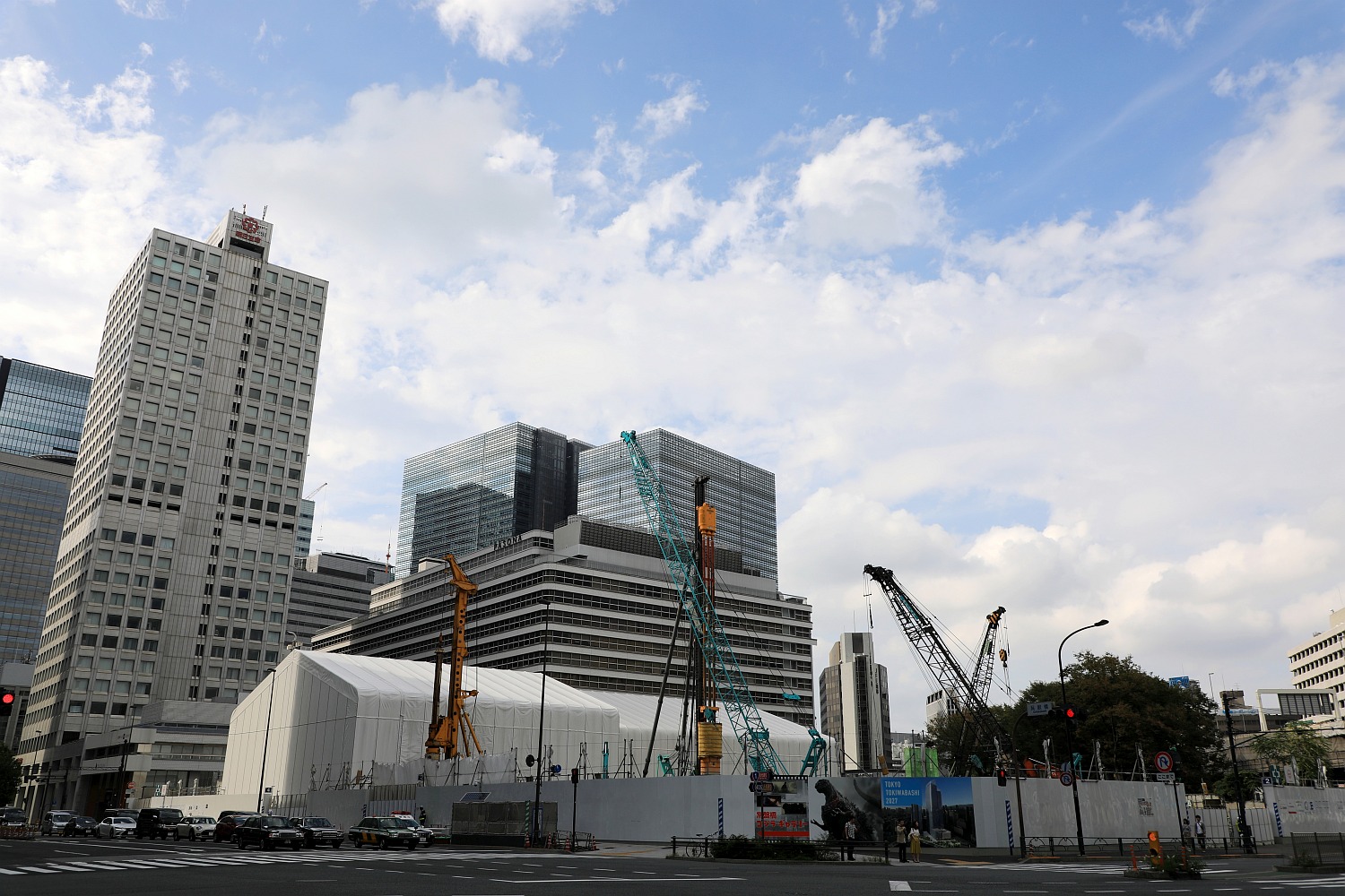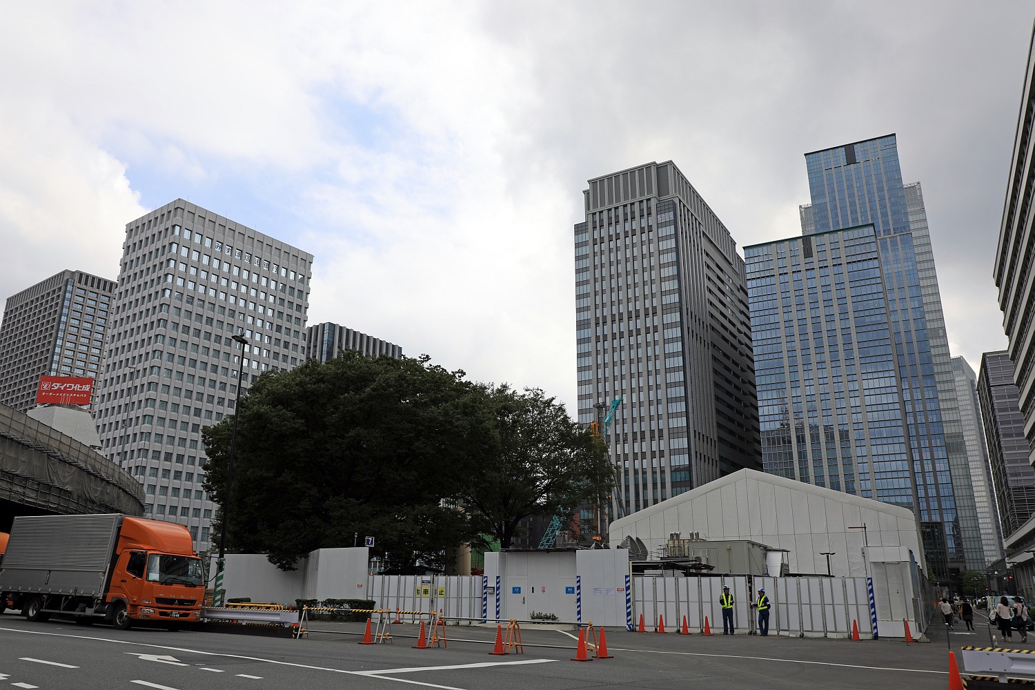 ¡¡DÅï¤Î·úÀßÃϤǤ¹¡£º¸¤Î¡ÖÆüËÜ¥Ó¥ë¡×¤ÏÉôʬ²òÂΤµ¤ì¤¿¤¿¤áÊѤï¤Ã¤¿ÊɤȤʤäƤ¤¤Þ¤¹¡£¤½¤Î¡ÖÆüËÜ¥Ó¥ë¡×¤ÎÃϲ¼¤Ë¤Ï²¼¿å¥Ý¥ó¥×½ê¤¬¤¢¤ë¤Î¤Ç¤¹¤¬¡¢¸½ºß¡¢¤³¤ÎDÅï¤ÎÃϲ¼¤Ë²¼¿å¥Ý¥ó¥×½ê¤ò·úÀßÃæ¤Ç¤³¤³¤Ëµ¡Ç½¤¬°Üž¤µ¤ì¤Þ¤¹¡£¤½¤Î°Üž¤¬½ª¤ï¤ë¤È¤è¤¦¤ä¤¯¡ÖÆüËÜ¥Ó¥ë¡×Á´ÂΤȡÖÄ«ÆüÀ¸Ì¿Âç¼êÄ®¥Ó¥ë¡×(ÃϾå29³¬¡¢ºÇ¹â¹â¤µ119m)¤Î²òÂι©»ö¤¬»Ï¤Þ¤êBÅï¤ÎÃ幩¤È¤Ê¤ê¤Þ¤¹¡£