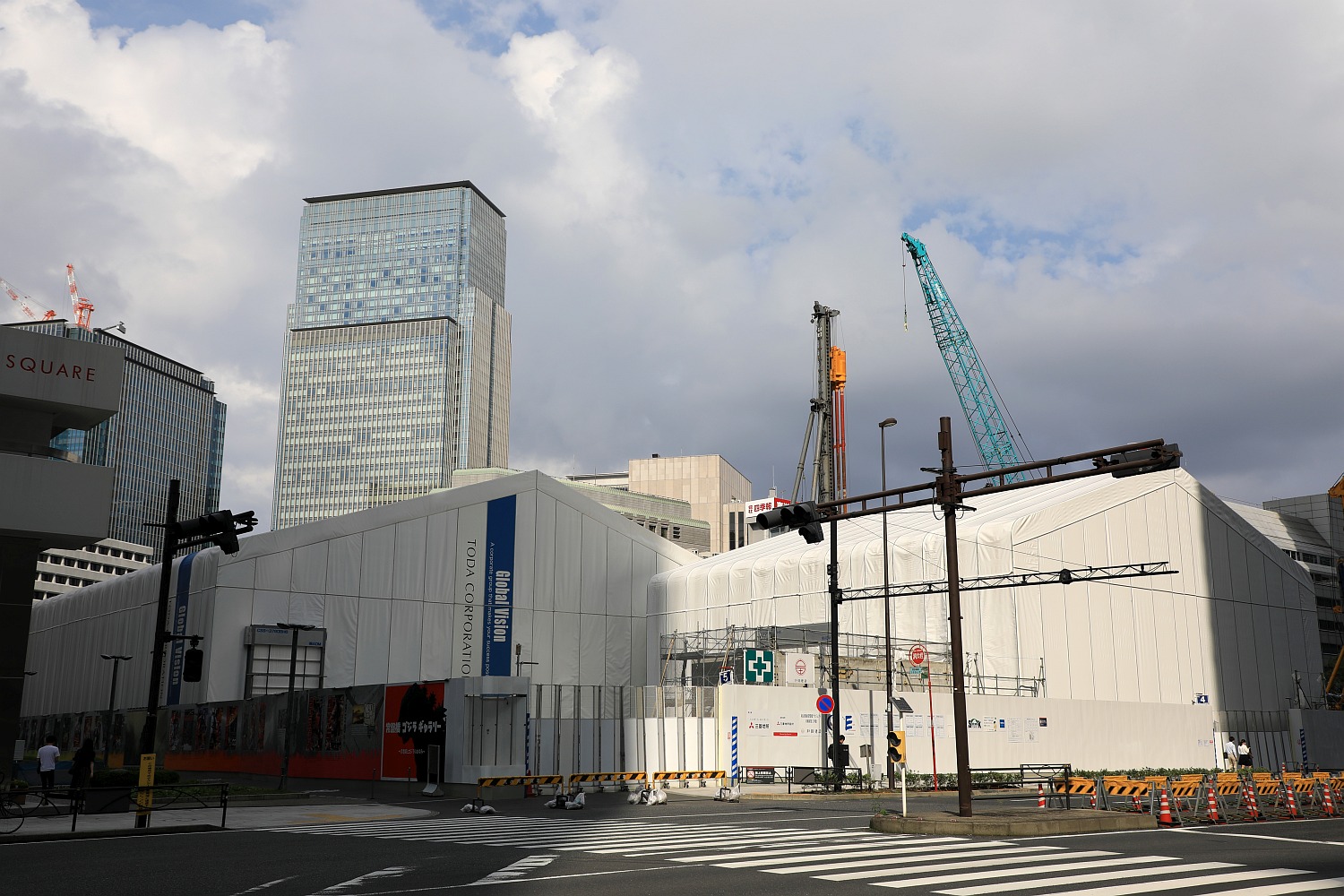 ¡¡¡ÖÅìµþ±ØÁ°¾ïÈ×¶¶¥×¥í¥¸¥§¥¯¥È¡×¤Î·úÀßÃϤǤ¹¡£¤³¤Î³ÑÃϤ¬ÃϾå40³¬¡¢¹â¤µ212m¤È¤Ê¤ëAÅï¤Î·úÀßÃϤǤ¹¡£ÃϾå61³¬¡¢¹â¤µ390m¤È¤Ê¤ëBÅï¤ÏÇò¤¤µðÂç¤Ê¥Æ¥ó¥È¤Î¸å¤í¤Ë·úÀߤµ¤ì¤Þ¤¹¡£º£¤Ï¤Þ¤À´û¸¥Ó¥ë¤¬²ÔÆ¯Ãæ¤Ç¤¹¡£