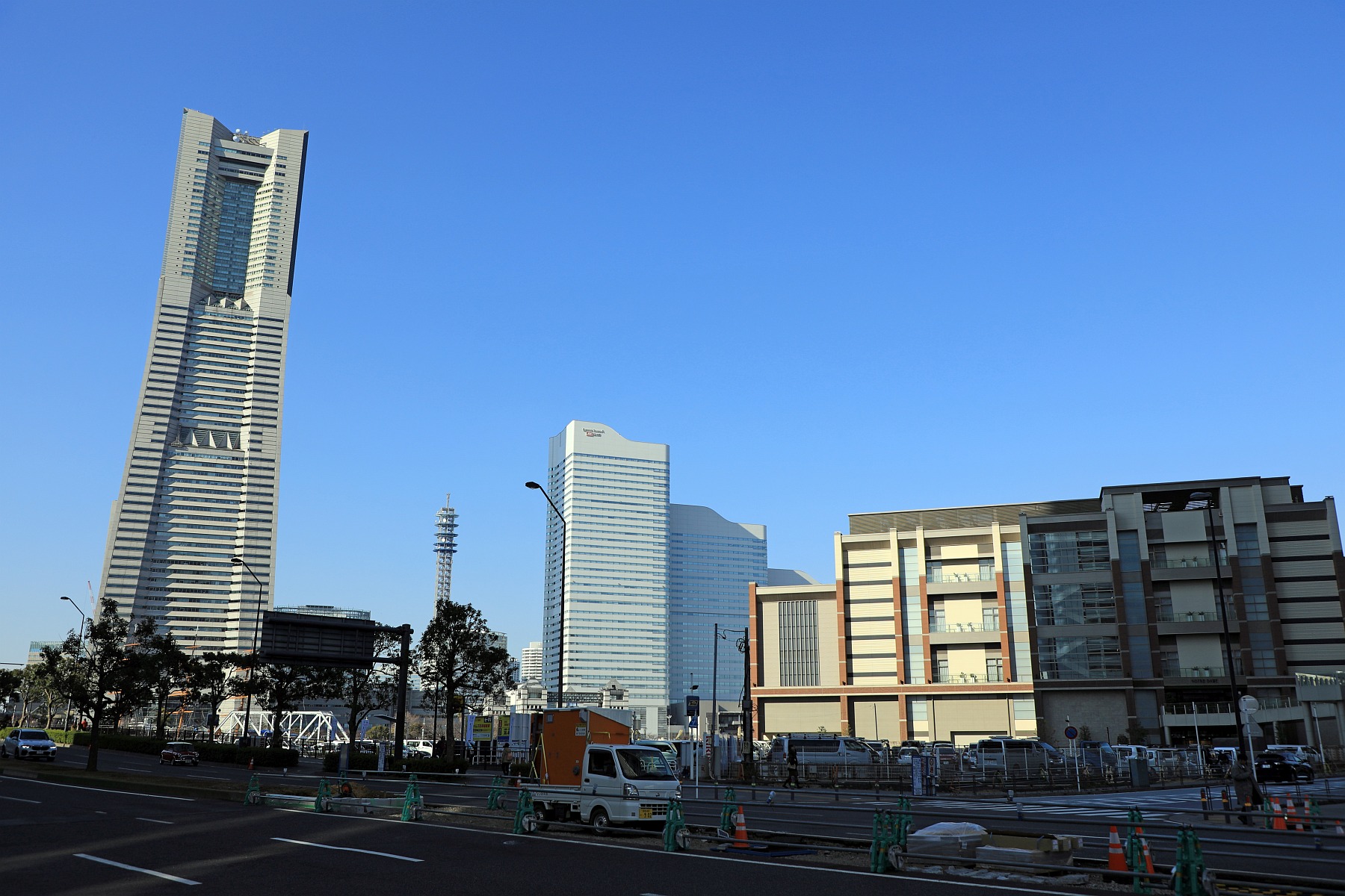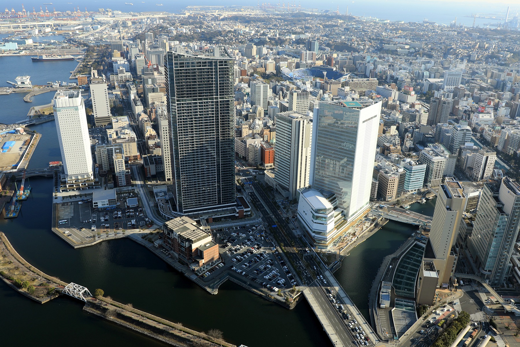 ¡¡¡Ö²£ÉÍ¥é¥ó¥É¥Þ¡¼¥¯¥¿¥ï¡¼¡×(ÃϾå70³¬¡¢¹â¤µ296.33m)¤Î69³¬¤Ë¤¢¤ëŸ˾¼¼¤«¤é¤Îį¤á¤Ç¤¹¡£¡Ö¥¶¡¦¥¿¥ï¡¼ ²£ÉÍËÌÃç¡×(ÃϾå58³¬¡¢¹â¤µ199.95m)¤Î¼êÁ°¤ÎÃó¼Ö¾ì¤È¤Ê¤Ã¤Æ¤¤¤ëÉôʬ¤¬¡ÖËÌÃçÄÌËÌÃ϶è(AÃ϶è)ºÆ³«È¯·×²è¡×¤Î·×²èÃϤǤ¹¡£²£ÉÍ¥é¥ó¥É¥Þ¡¼¥¯¥¿¥ï¡¼ÊýÌ̤ˤϼפë·úʪ¤¬¤Ê¤¤Ä¯Ë¾È´·²¤Î¥í¥±¡¼¥·¥ç¥ó¤Ç¤¹¡£µÕ¤ËÈ¿ÂЦ¤Ï͹âÁØ¥Ó¥ë¤ÎÊɤȤʤäƤ¤¤Þ¤¹¡£