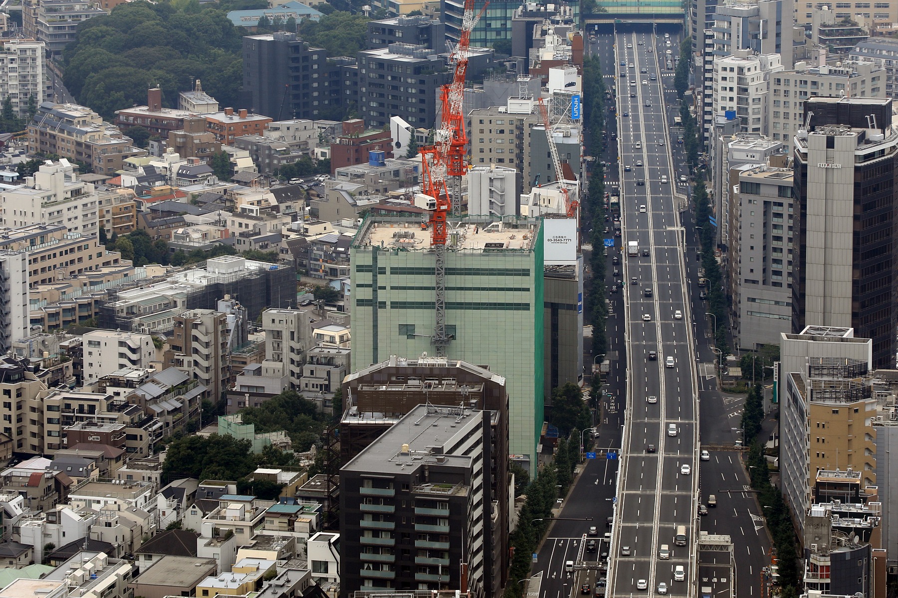 ¡¡Ãæ±û¤Îƻϩ¤Ï¼óÅÔ¹â½ÂëÀþ¤ÈÏ»ËÜÌÚÄ̤ê¤Ç¡¢¤½¤Îƻϩ¤ò¶´¤ó¤À±¦Î٤ξ¤è¤ê¤Á¤ç¤Ã¤ÈÇØ¤Î¹â¤¤¥Ó¥ë¤¬ÉٻΥե¤¥ë¥à¤ÎÀ¾ËãÉÛËܼҡÖÉٻΥե¤¥ë¥àÀ¾ËãÉÛ¥Ó¥ë¡×(ÃϾå18³¬¡¢¹â¤µ70.1m)¤Ç¤¹¡£