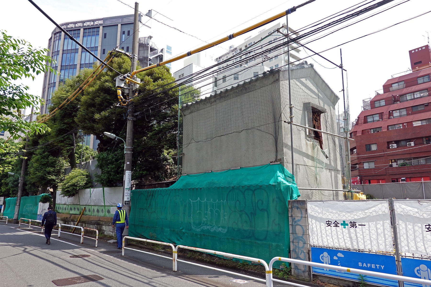 解体工事中の「海喜館」です。緊急事態宣言が解除され通常出勤に戻ったので昼休みに職場から徒歩で行って撮ってきました。場所は五反田で桜田通りと目黒川が交差している辺りです。