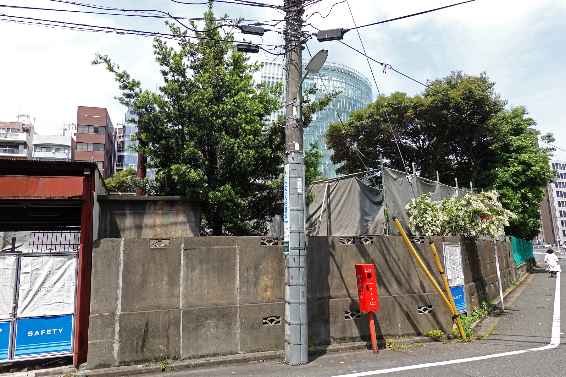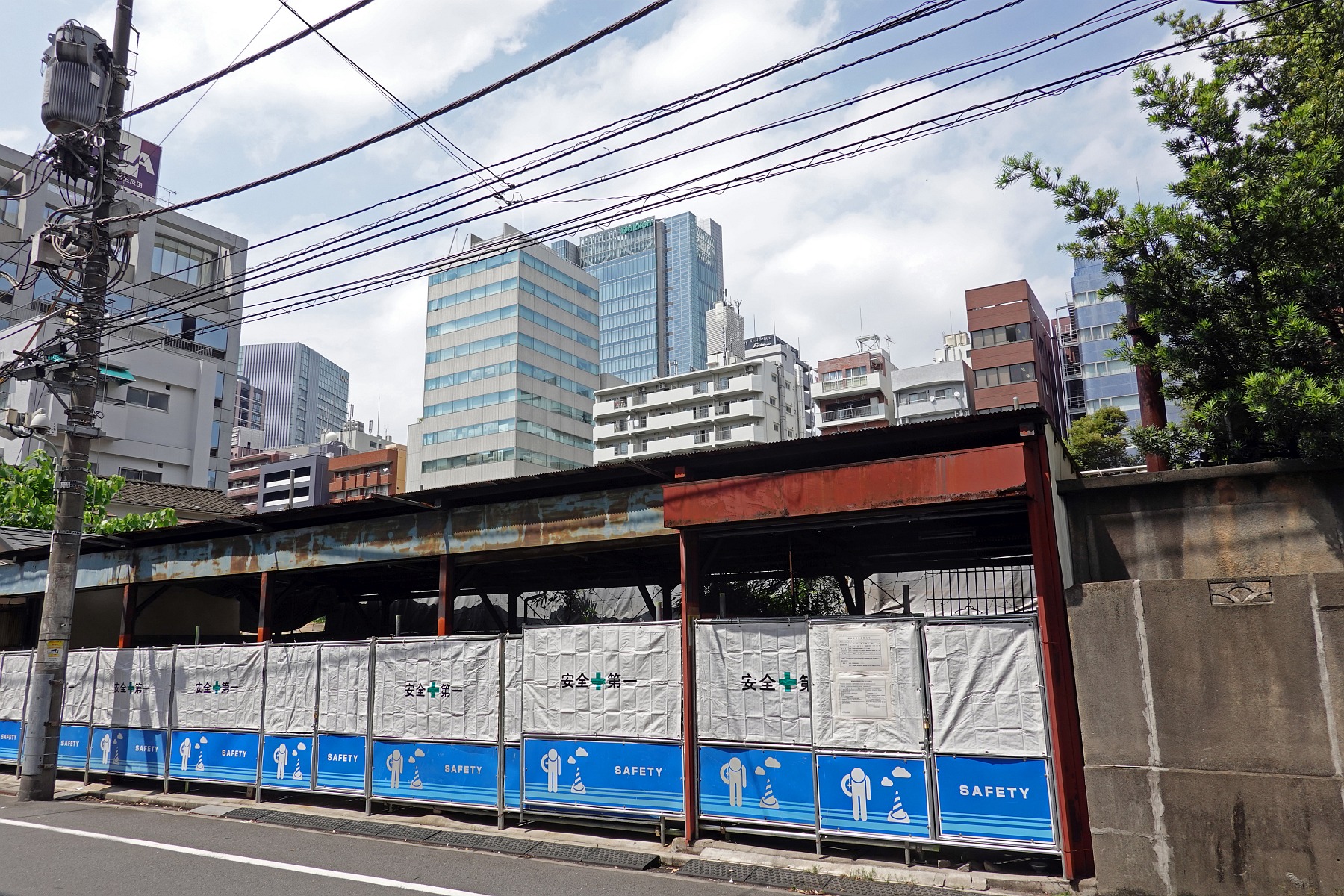 仮囲いの中では建物の解体工事が進んでいました。