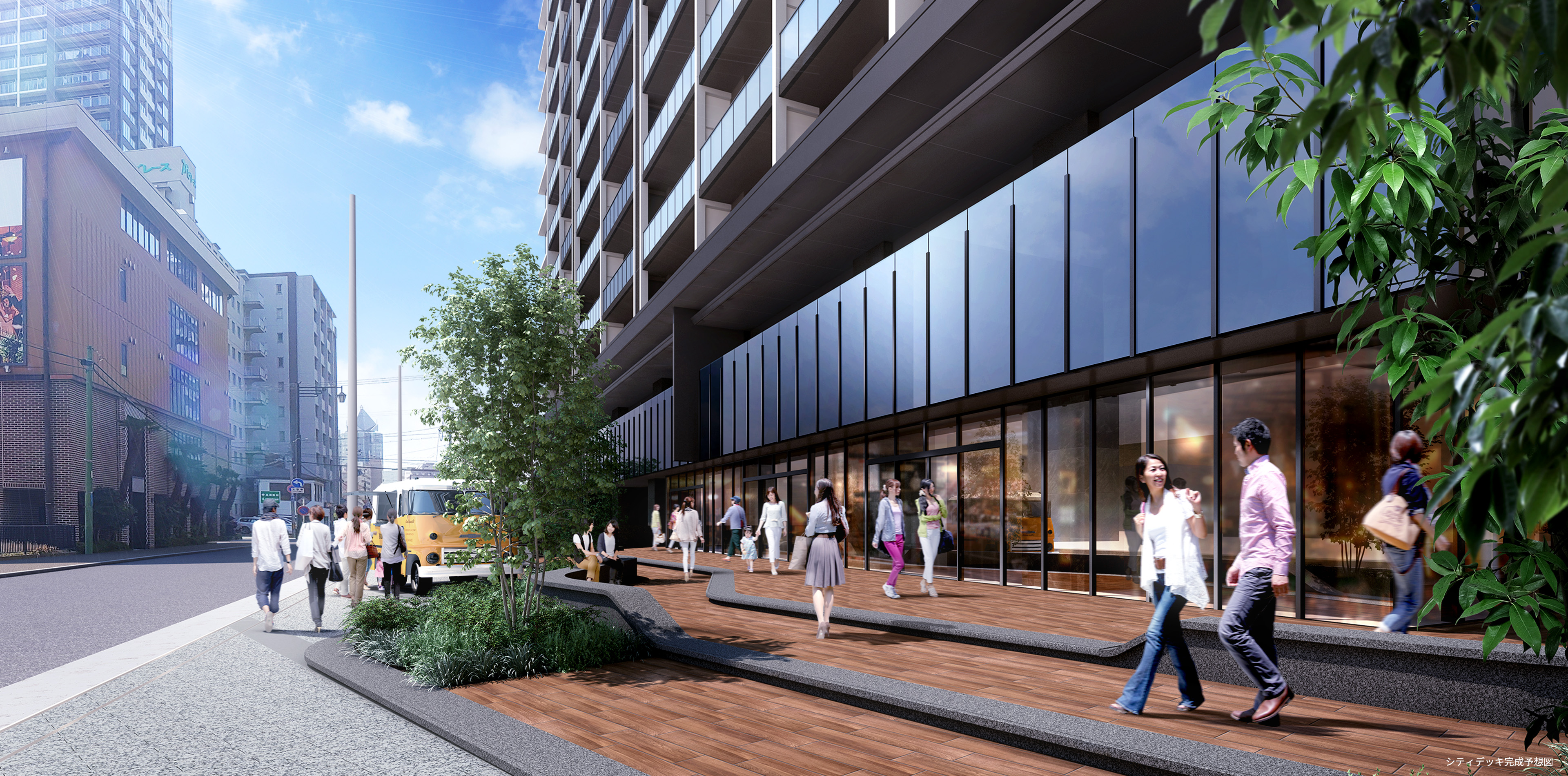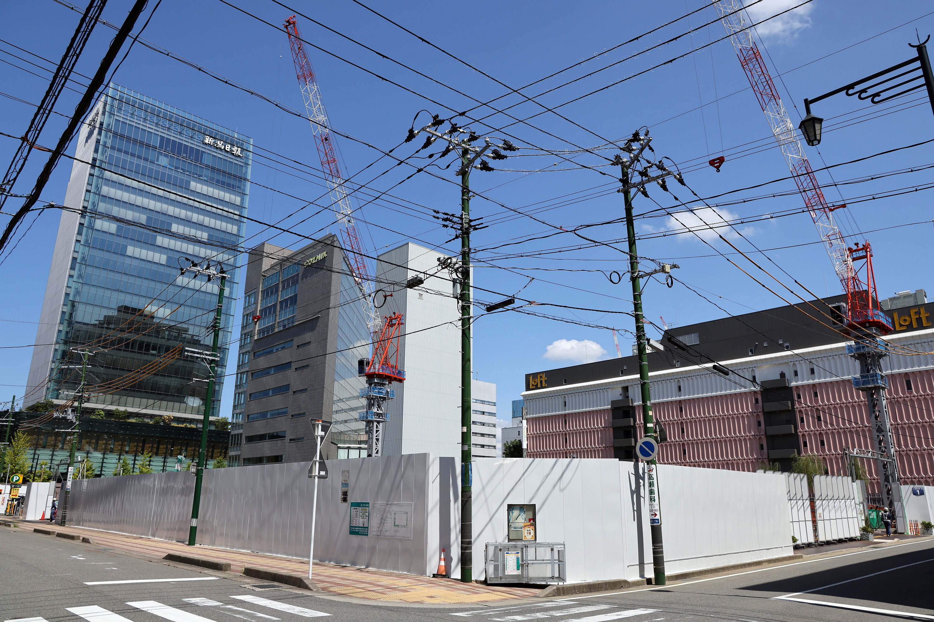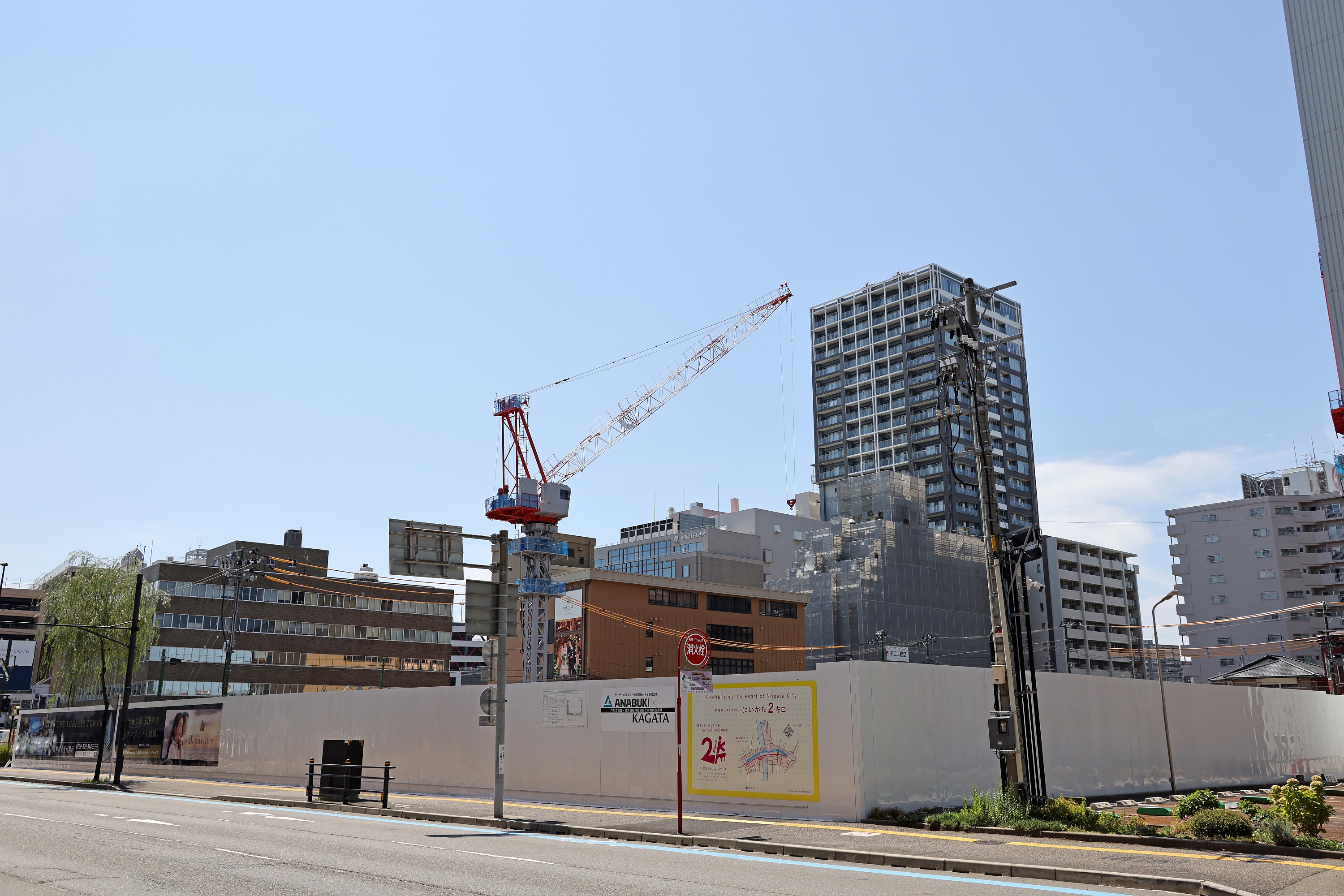 ¡¡ÆîÀ¾Â¦¤«¤é»£±Æ¡£º¸±ü¤Î͹âÁØ¥Ó¥ë¤Ï¡Ö¿·³ãÆüÊó¥á¥Ç¥£¥¢¥·¥Ã¥×¡×(ÃϾå20³¬¡¢¹â¤µ105.1m)¤Ç¤¹¡£