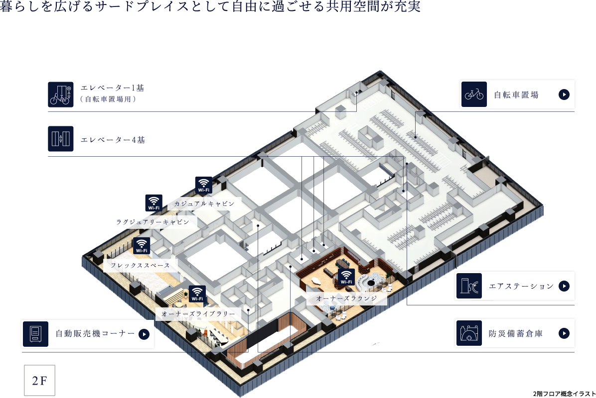 ¡¡¥Õ¥í¥¢¹½À®¤Ï1³¬¤ËŹÊÞ¡¢¥°¥é¥ó¥É¥é¥¦¥ó¥¸¡¢2³¬¤Ë¥ª¡¼¥Ê¡¼¥º¥é¥¦¥ó¥¸¡¢¥ª¡¼¥Ê¡¼¥º¥é¥¤¥Ö¥é¥ê¡¼¡¢¥²¥¹¥È¥ë¡¼¥à(2¼¼)¤Ê¤É¶¦ÍÑ»ÜÀߤ¬ÇÛÃÖ¤µ¤ì¡¢3³¬°Ê¾å¤¬½»Âð¥Õ¥í¥¢¤Ç20³¬¤Î°ìÉô½»¸Í(10¸Í)¤Ï¥×¥ì¥ß¥¢¥à½»¸Í¤È¤Ê¤ê¤Þ¤¹¡£
