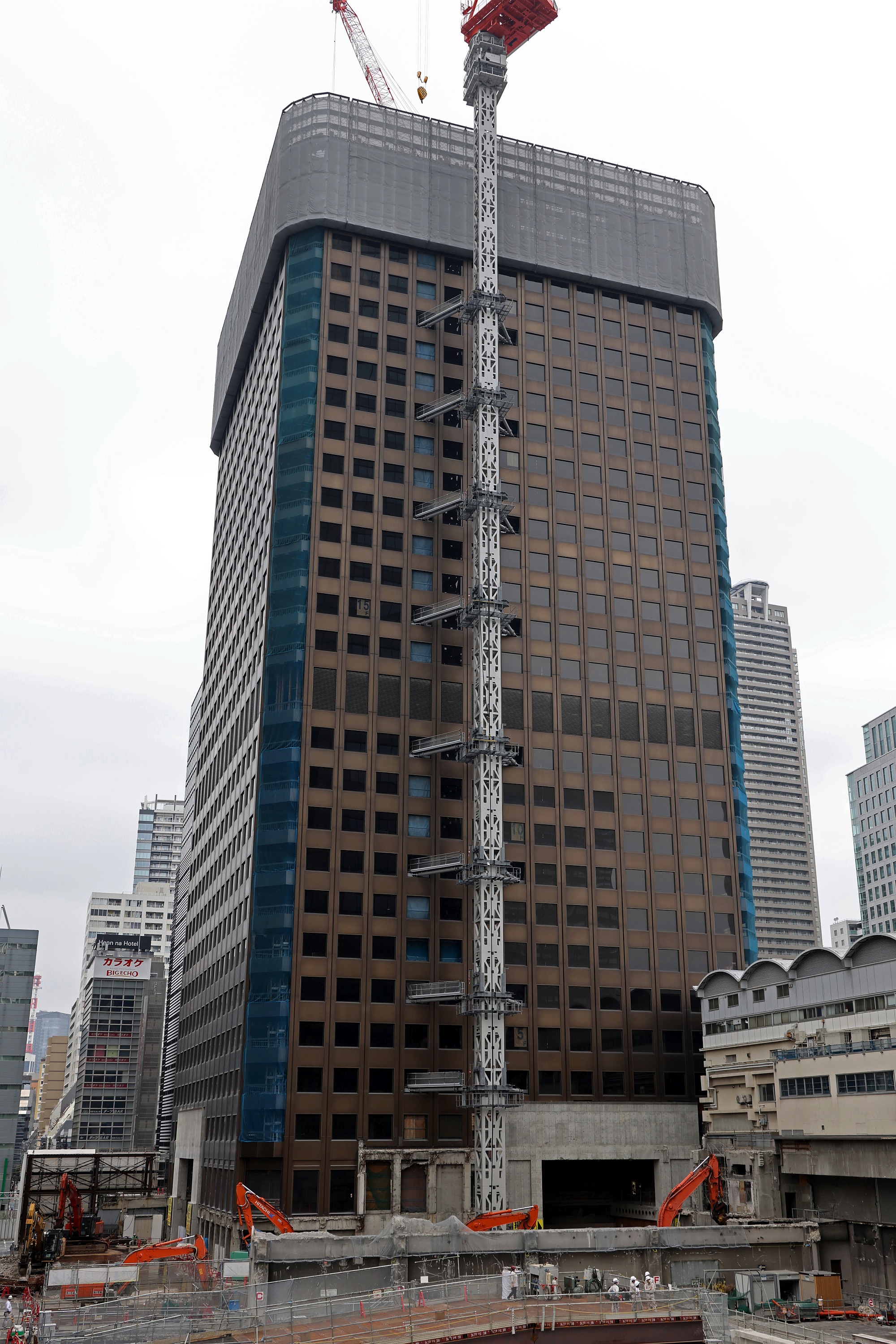 ¡¡²òÂÎÃæ¤Î¡ÖÀ¤³¦Ëǰץ»¥ó¥¿¡¼¥Ó¥ë¥Ç¥£¥ó¥°¡×¤Îµ¬ÌϤÏÃϾå40³¬¡¢Ãϲ¼3³¬¡¢¹â¤µ152m¡¢ºÇ¹â¹â¤µ162.59m¡¢ÉßÃÏÌÌÀÑ1Ëü6080.99Ö¡¢·úÃÛÌÌÀÑ9,573.17Ö¡¢±ä¾²ÌÌÀÑ15Ëü3941.22Ö¡¢·úÃÛ¼ç¤ÏÅìµþ¥¿¡¼¥ß¥Ê¥ë¡Ê¸½¡§À¤³¦Ëǰץ»¥ó¥¿¡¼¥Ó¥ë¥Ç¥£¥ó¥°¡Ë¡¢Àß·×¼Ô¤ÏÆü·úÀ߷ס¢ÉðÆ£¸¦µæ¼¼¡ÊÉðÆ£¹½Â¤Îϳظ¦µæ½ê¡Ë¡¢»Ü¹Ô¼Ô¤Ï¼¯Åç·úÀߤÇ1967ǯ7·îÃ幩¡¢1970ǯ3·î¤Ë½×¹©¤·¡¢2021ǯ6·î30Æü¤ËÊÄ´Û¤·¤Þ¤·¤¿¡£¤½¤·¤Æ¸½ºß¤Ï2021ǯ8·î1Æü¡Á2023ǯ3·î31Æü¤Î¹©´ü¤Ç¼¯Åç·úÀߤˤè¤Ã¤Æ²òÂι©»ö¤¬¹Ô¤ï¤ì¤Æ¤¤¤Þ¤¹¡£²òÂι©»ö¤Ë¤Ï¿·³«È¯¤·¤¿¡Ö¼¯Å祹¥é¥Ã¥·¥å¥«¥Ã¥È¹©Ë¡¡×¤¬ºÎÍѤµ¤ì¤Æ¤¤¤Þ¤¹¡£