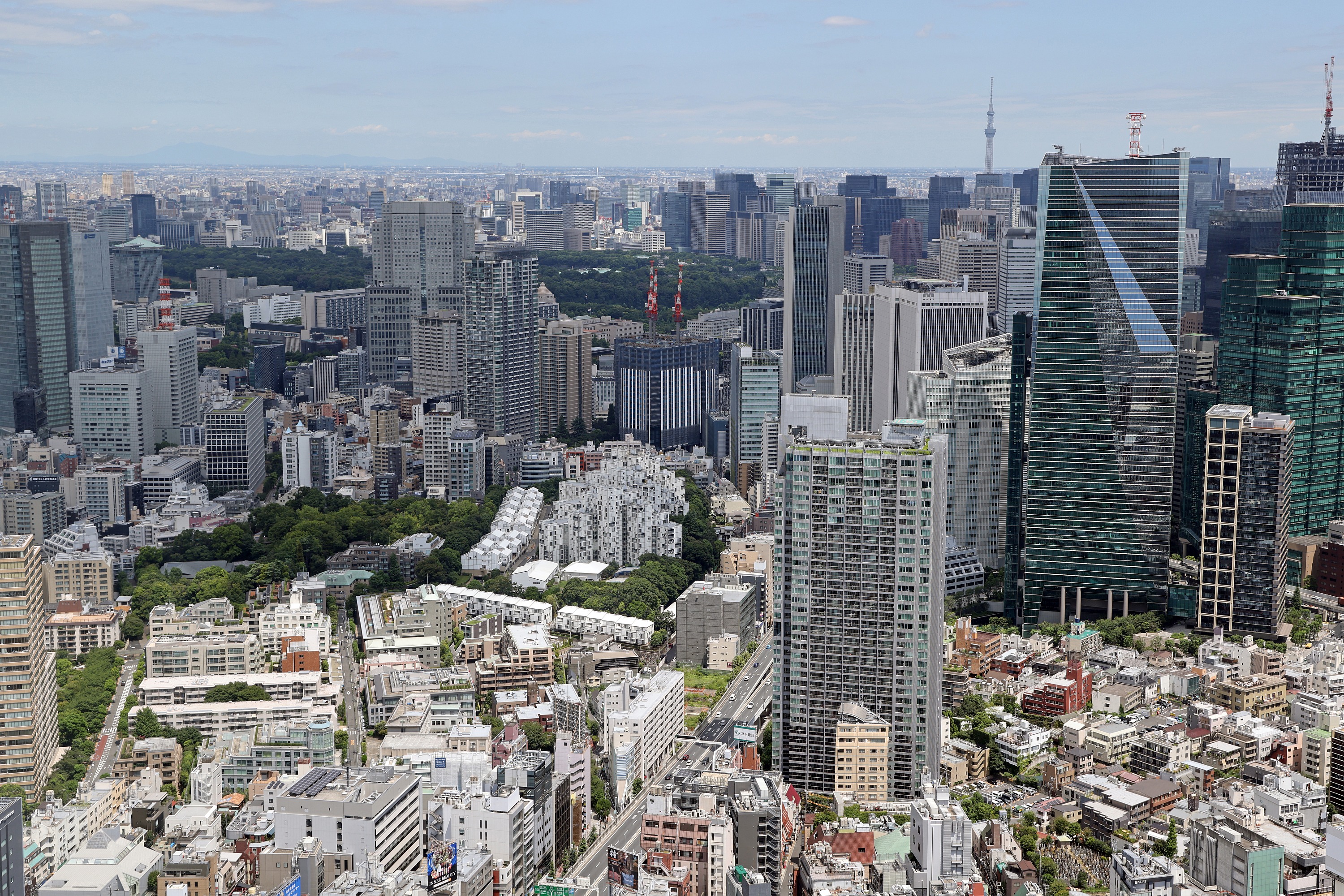 ¡¡Ä¶¹âÁإӥ뷲¤Î·ä´Ö¤«¤é¸«¤¨¤ë¹Äµï¤ò±£¤·¤Æ¤·¤Þ¤¦Ä¶¹âÁØ¥Ó¥ë¤È¤Ê¤ê¤Þ¤¹¡£±¦Â¦¤Î¡ÖÀֺ䥤¥ó¥¿¡¼¥·¥Æ¥£ AIR¡×(ÃϾå38³¬¡¢¹â¤µ205.08m)¤è¤ê¾¯¤·¹â¤¤209.60m¤Ë¤Ê¤ë¤Î¤ÇÂç¼êÄ®¤Î͹âÁإӥ뷲¤Ë¤â¾¯¤·±£¤ì¤Æ¤·¤Þ¤¤¤½¤¦¤Ç¤¹¡£