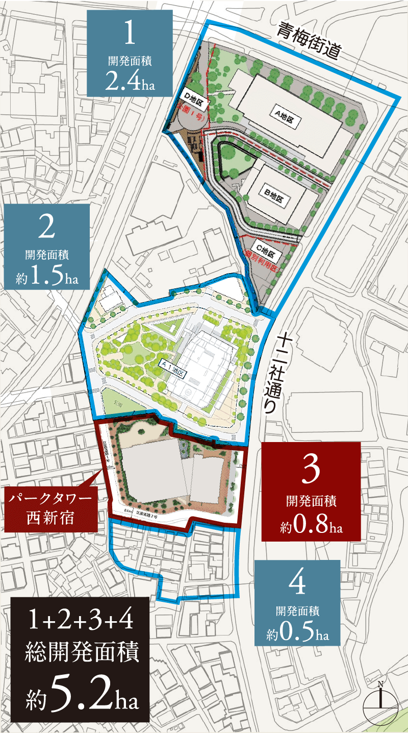 ¡¡·úÀßÃϤϽ½Æó¼ÒÄ̤ê±è¤¤¤Ç¡Ö¥Ñ¡¼¥¯¥¿¥ï¡¼À¾¿·½É¡×¤â´Þ¤á¤ÆºÆ³«È¯¤¬Â³¤¤¤Æ¤ª¤ê¡¢º£¸å¤ÎºÆ³«È¯¤â´Þ¤á¤ë¤ÈÁí³«È¯ÌÌÀѤÏÌó5.2ha¤È¤Ê¤ê¤Þ¤¹¡£¤³¤Î4¤Ä¤Î¥¨¥ê¥¢¤Î¤¦¤Á1¡Á3¤¬¾åµ¤ÎÍ¥¶øÇÜΨÂоݳ°¥¨¥ê¥¢¤È¤Ê¤Ã¤Æ¤¤¤Þ¤¹¡£