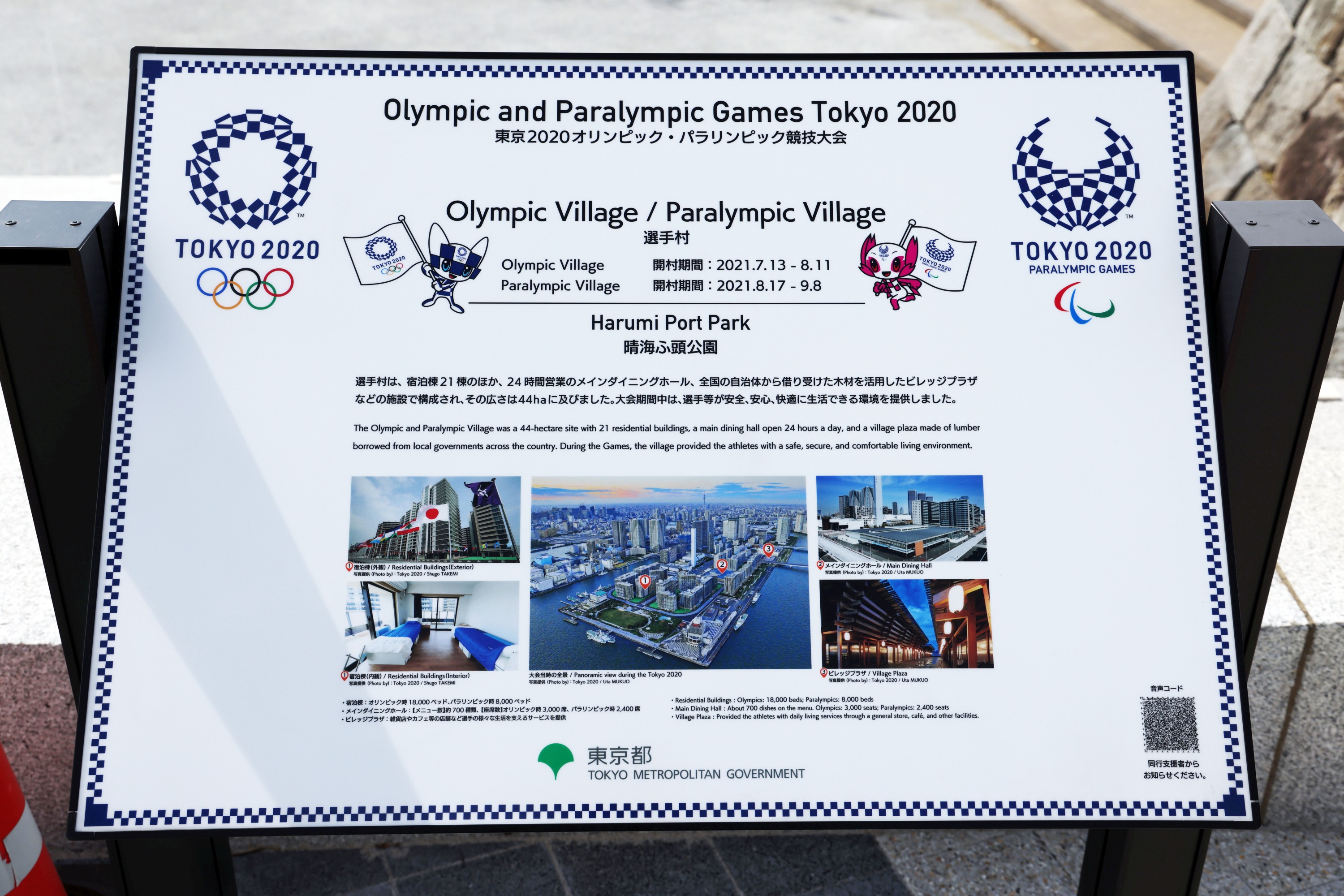 ¡¡Å¸Ë¾¹¾ì¤ÎÊ®¿åÉôʬ¤Ë¤ÏÅìµþ¸ÞÎØ¤ÎÁª¼ê¼¤À¤Ã¤¿¤³¤È¤ò¼¨¤¹¡ÖSite of The Tokyo 2020¡×¡ÖOlympic Village and Paralympic Village¡×¤Îʸ»úÈǤâÀßÃÖ¤µ¤ì¤Æ¤¤¤Þ¤¹¡£