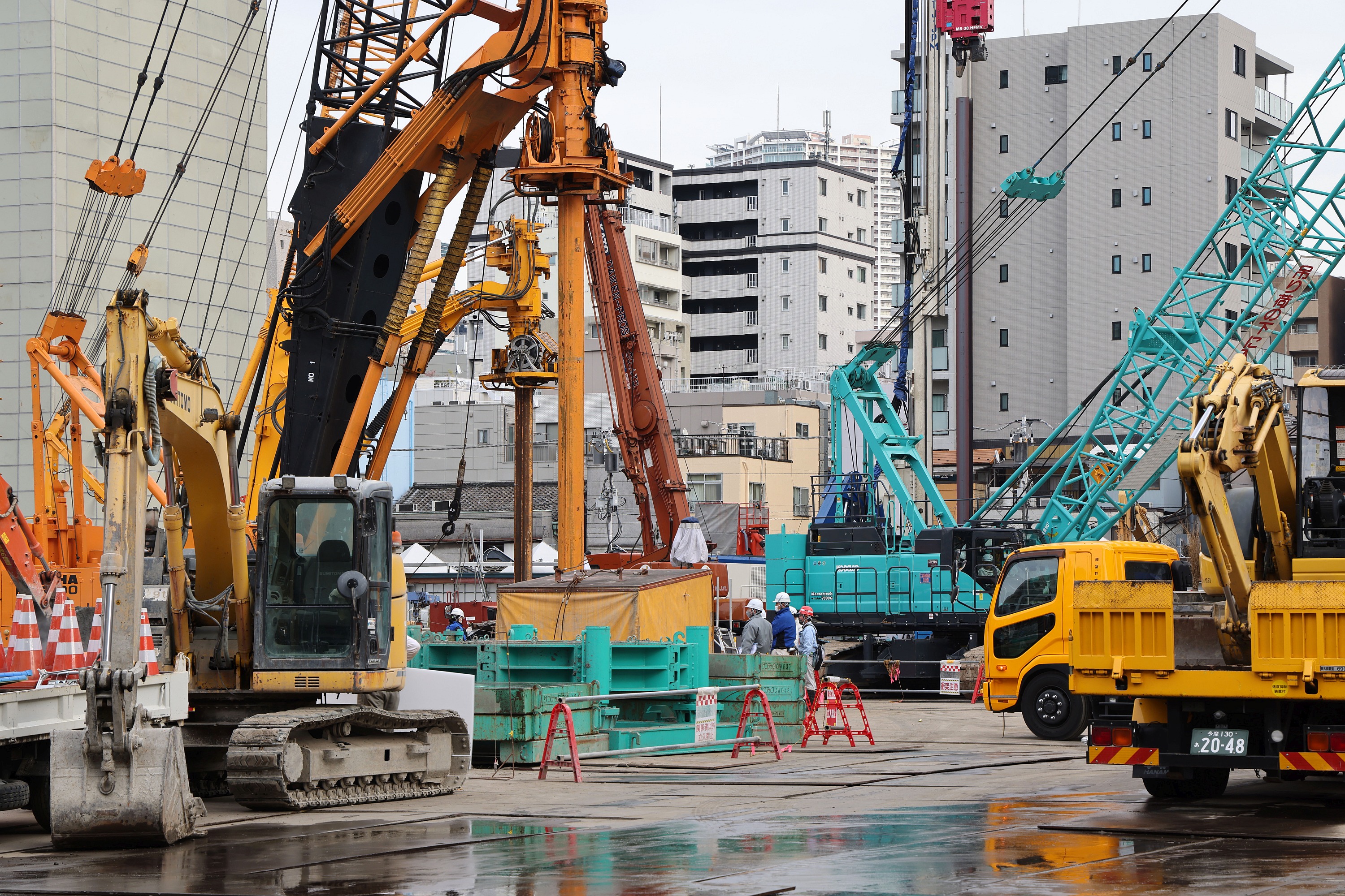 ¡¡Ë̦¤ÎB-2³¹¶èÁ°¤«¤é»£±Æ¡£Ãæ±û¤Î²«¿§¤Î·úʪ¤¬¥·¥Ë¥¢¥ì¥¸¥Ç¥ó¥¹¤Î¡Ö¥µ¥ó¥·¥Æ¥£¶äºÂEAST¡×(ÃϾå31³¬¡¢¹â¤µ119m)¤Ç¡¢¤½¤Îº¸Â¦¤Ç¤Ï»°°æÉÔÆ°»º¥ì¥¸¥Ç¥ó¥·¥ã¥ë¤ÈÌî¼ÉÔÆ°»º¤Ë¤è¤ë¥¿¥ï¡¼¥Þ¥ó¥·¥ç¥ó¡Ö·îÅç»°ÃúÌÜÆîÃ϶èÂè°ì¼ï»Ô³¹ÃϺƳ«È¯»ö¶È¡×(ÃϾå48³¬)¤¬·×²è¤µ¤ì¤Æ¤¤¤Þ¤¹¡£