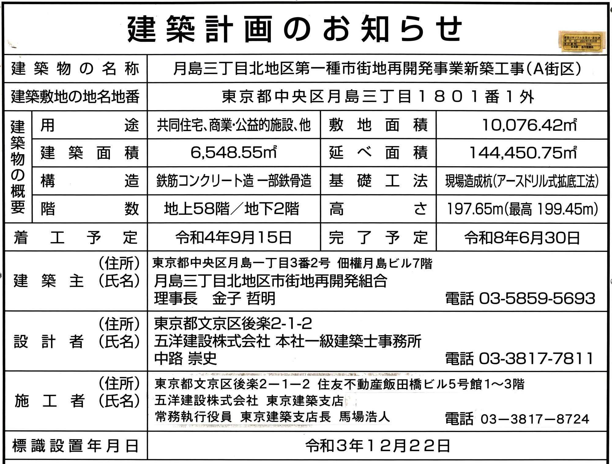 ¡¡¡Ö(²¾¾Î)·îÅç»°ÃúÌÜËÌÃÏ¶èºÆ³«È¯¥×¥í¥¸¥§¥¯¥È¡×¤Ï¶ùÅÄÀî¤Î¤¹¤°¶á¤¯¤Ë·úÀߤµ¤ì¤ë¥¿¥ï¡¼¥Þ¥ó¥·¥ç¥ó¤Ç¡¢µ¬ÌϤÏÃϾå58³¬¡¢Ãϲ¼2³¬¡¢¹â¤µ197.65m¡¢ºÇ¹â¹â¤µ199.45m¡¢ÉßÃÏÌÌÀÑ1Ëü76.42Ö¡¢·úÃÛÌÌÀÑ6,743.49Ö¡¢±ä¾²ÌÌÀÑ14Ëü4276.80Ö¡¢·úÃÛ¼ç¤Ï·îÅç»°ÃúÌÜËÌÃ϶è»Ô³¹ÃϺƳ«È¯Áȹç¡Ê»²²ÃÁȹç°÷¡¦Çä¼ç¡§½»Í§ÉÔÆ°»º¡¢Åìµþ·úʪ¡¢ÂçÏ¥ϥ¦¥¹¹©¶È¡¢¼óÅÔ·÷ÉÔdz·úÃÛ¸ø¼Ò¡Ë¡¢À߷׼ԤϸÞÍηúÀß¡¦Âç·úÀ߷ׯÃÄê¶È̳Âå¹Ô¶¦Æ±ÂΡ¢»Ü¹©¼Ô¤Ï¸ÞÍηúÀߤÇ2022ǯ10·î20ÆüÃ幩¡¢2026ǯ4·î²¼½Ü½×¹©Í½Äê¤È¤Ê¤Ã¤Æ¤¤¤Þ¤¹¡£