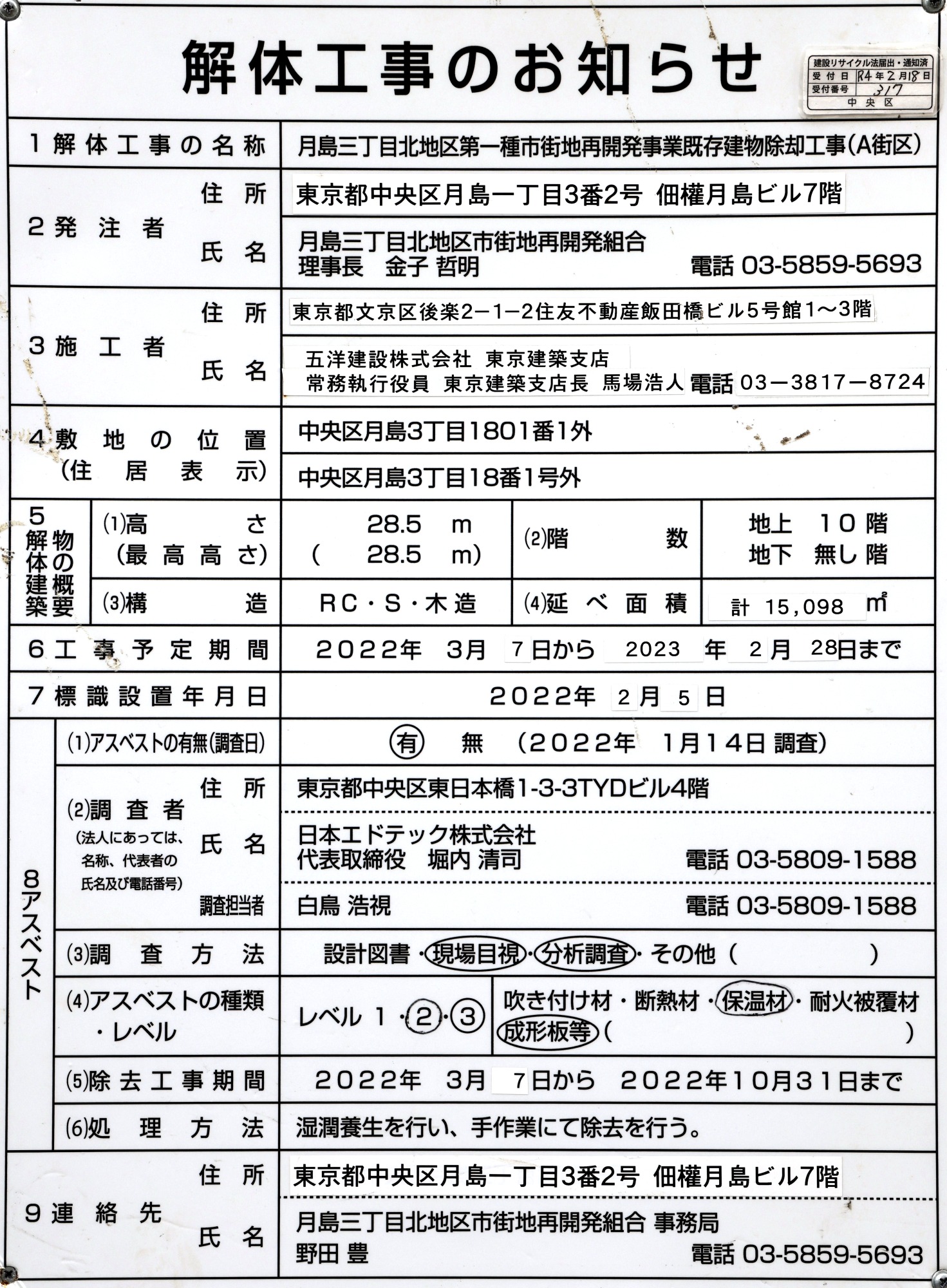 ¡¡A³¹¶è¤Î²òÂι©»ö¤Î¤ªÃΤ餻¤Ç¤¹¡£ÀßÃÖÅö½é¤Ï2022ǯ10·î31Æü¤Þ¤Ç¤Î¹©´ü¤Ç¤·¤¿¤¬2023ǯ2·î28Æü¤Þ¤Ç¿¤Ó¤Æ¤¤¤Þ¤¹¡£