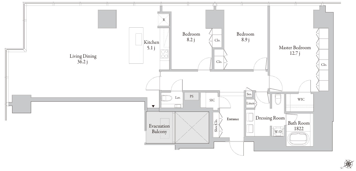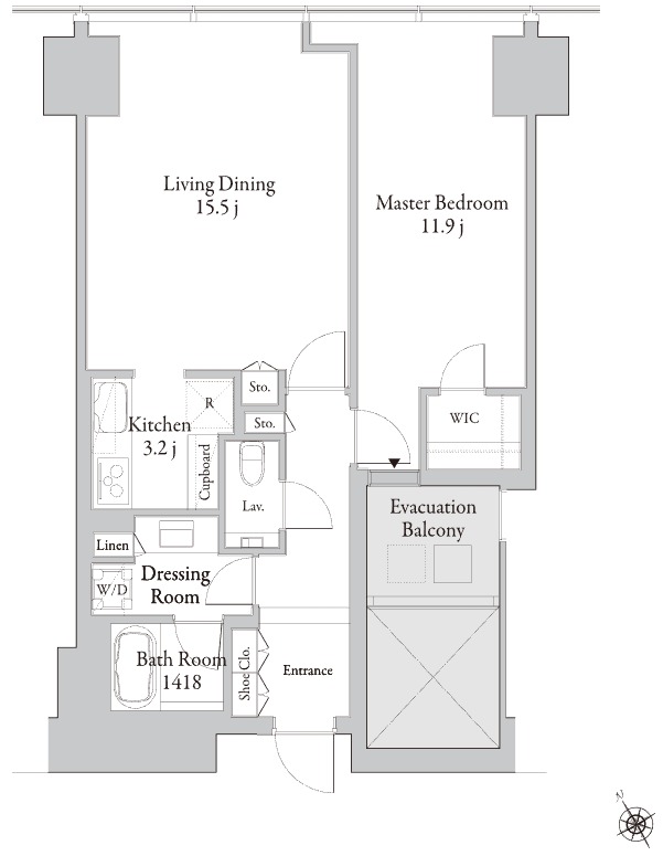 ¡¡¡Ö¥é¡¦¥È¥¥¡¼¥ë¿·½É¥Õ¥¡¡¼¥¹¥È¡×¤Î¸ø¼°HP¤Ë·ÇºÜ¤µ¤ì¤Æ¤¤¤ë´Ö¼è¤ê¤Ç°ìÈÖ¶¹¤¤70-A¥¿¥¤¥×¤Î´Ö¼è¤ê¿Þ¤Ç¤¹¡£´Ö¼è¤ê¤Ï1LDK¤ÇÀìÍÌÌÀѤÏ71.66֤ȤʤäƤ¤¤Þ¤¹¡£³°Â¦¤Ë¤Ï¥Ð¥ë¥³¥Ë¡¼¤Ï¤¢¤ê¤Þ¤»¤ó¤ó¤¬¡¢Æâ¦¤Ë¤ÏEvacuation Balcony(ľÌõ¤ÇÈóÆñ¥Ð¥ë¥³¥Ë¡¼)¤¬¤¢¤ê¤Þ¤¹¡£