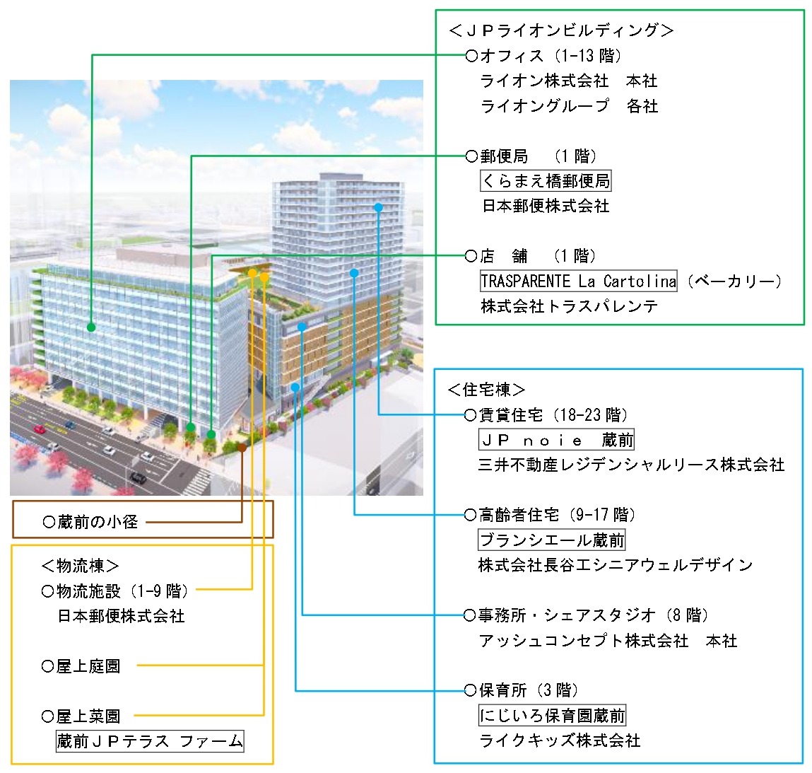 ¡¡½»ÂðÅï¤Ï3³¬¤ËÊݰé½ê¤Î¡Ö¤Ë¤¸¤¤¤íÊݰé±à¢Á°¡×¡¢8³¬¤Ï»ö̳½ê¡¦¥·¥§¥¢¥¹¥¿¥¸¥ª¤È¤Ê¤ê¡¢9¡Á17³¬¤¬¹âÎð¼Ô½»Âð¤Î¡Ö¥Ö¥é¥ó¥·¥¨¡¼¥ë¢Á°¡×¡¢18¡Á23³¬¤¬ÄÂÂß½»Âð¤Î¡ÖJP noie ¢Á°¡×¤È¤Ê¤Ã¤Æ¤ª¤ê¡¢2023ǯ4·î¾å½Ü¤«¤éÆþµï³«»ÏͽÄê¤È¤Ê¤Ã¤Æ¤¤¤Þ¤¹¡£