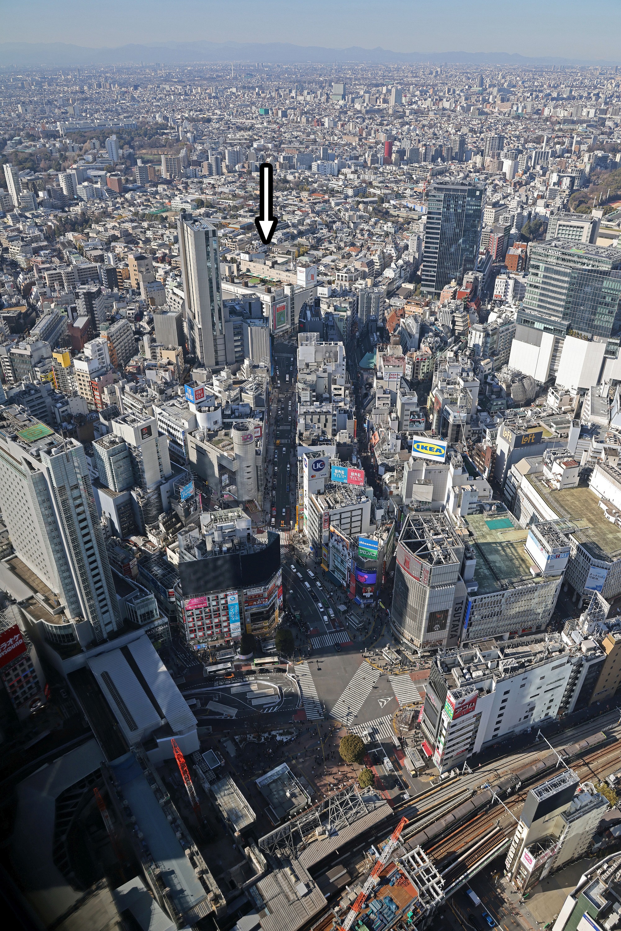 ¡¡2023ǯ1·î11Æü¤Ë¡Ö½Â륹¥¯¥é¥ó¥Ö¥ë¥¹¥¯¥¨¥¢¡×(ÃϾå47³¬¡¢¹â¤µ229.71m)¤ÎºÇ¾åÉô¤Ë¤¢¤ëÅ¸Ë¾Âæ¡Ö½Â륹¥«¥¤¡×¤«¤é»£±Æ¤·¤¿½Âë¤ÎÈ˲ڳ¹ÊýÌ̤Ǥ¹¡£¼Ì¿¿²¼¤¬½Âë±ØÁ°¤Î¥¹¥¯¥é¥ó¥Ö¥ë¸òº¹ÅÀ¤Ç¡¢½Âë±Ø¤«¤é¸«¤Æ¡ÖSHIBUYA 109¡×¤Î±¦Â¦¤Ë¤¢¤ëʸ²½Â¼Ä̤ê¤ÎÆÍ¤Åö¤ê¤¬¡ÖÅìµÞÉ´²ßŹ ½Â롦ËÜŹ¡×¤Ç¤¹¡£¤½¤³¤Ë¡Ö½Â륢¥Ã¥Ñ¡¼¡¦¥¦¥¨¥¹¥È¡¦¥×¥í¥¸¥§¥¯¥È¡ÊShibuya Upper West Project¡Ë¡×(ÃϾå36³¬¡¢¹â¤µ164.8m)¤¬·úÀߤµ¤ì¤Þ¤¹¡£