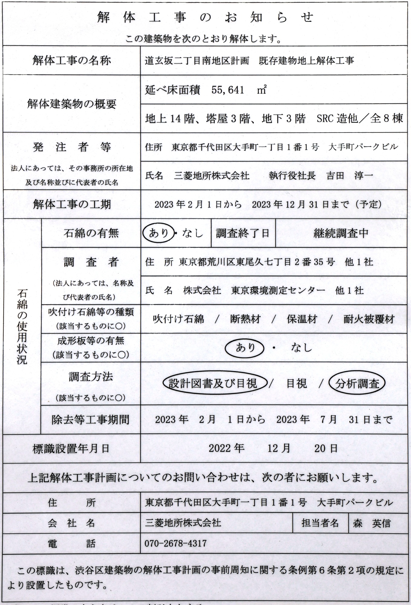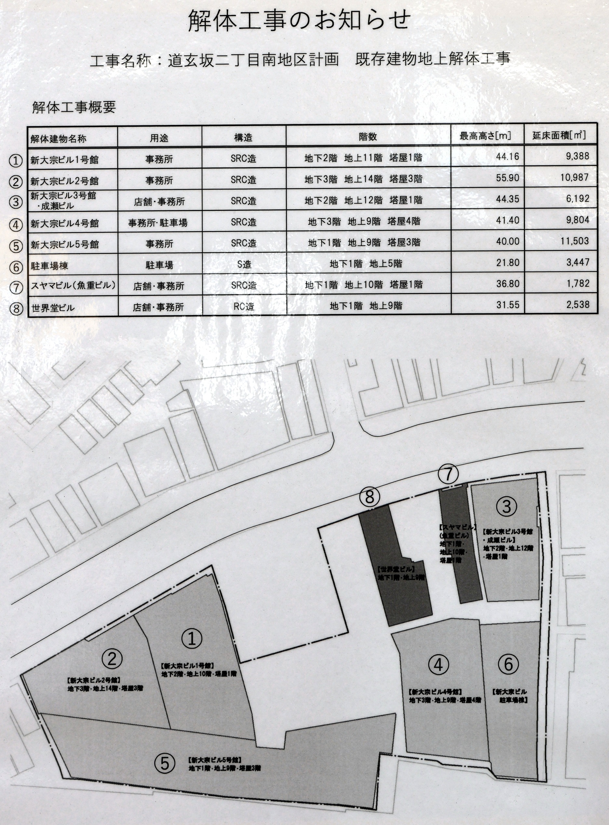¡¡¡ÖÆ»¸¼ºäÆóÃúÌÜÆîÃ϶èÂè°ì¼ï»Ô³¹ÃϺƳ«È¯»ö¶È¡×¤Î²òÂι©»ö¤Ç¤Ï¿·Â罡¥Ó¥ë1¹æ´Û¡Á5¹æ´Û¡¢¿·Â罡¥Ó¥ëÃó¼Ö¾ìÅï¡¢¥¹¥ä¥Þ¥Ó¥ë¡Êµû½Å¥Ó¥ë¡Ë¡¢À¤³¦Æ²¥Ó¥ë¤È¤¤¤Ã¤¿8Åï¤Î¥Ó¥ë¤¬2023ǯ2·î1Æü¤«¤é2023ǯ12·î31Æü¤Þ¤Ç¤Î¹©´ü¤ÇÃϾåÉô¤Î²òÂι©»ö¤¬¹Ô¤ï¤ì¤Þ¤¹¡£