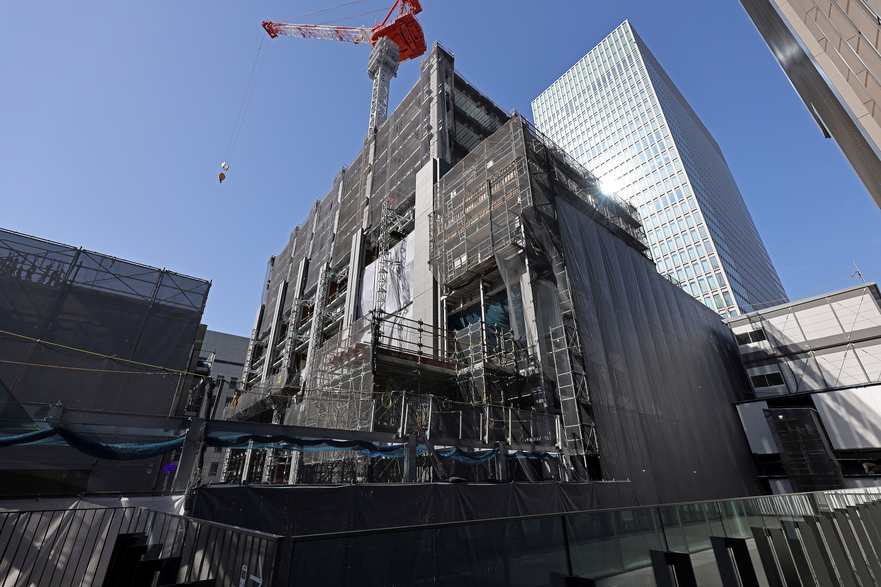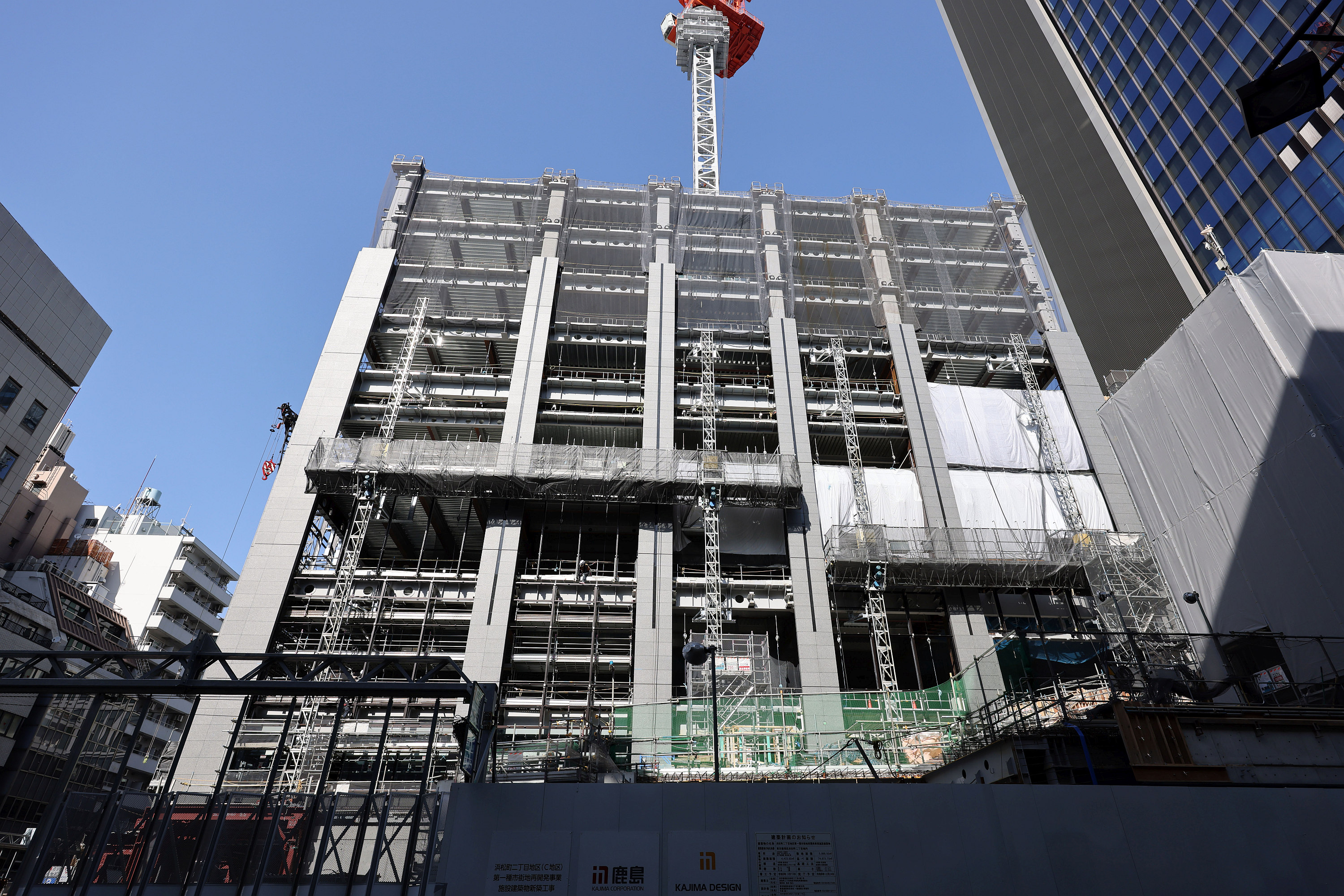 ¡¡2023ǯ2·î18Æü¤ËËÌÀ¾Â¦¤«¤é»£±Æ¤·¤¿¡ÖWORLD TOWER RESIDENCE¡Ê¥ï¡¼¥ë¥É¥¿¥ï¡¼¥ì¥¸¥Ç¥ó¥¹¡Ë¡×(ÃϾå46³¬¡¢ºÇ¹â¹â¤µ185.43m)¤Î·úÀßÃϤǤ¹¡£º¸¼êÁ°¤ÎÇò¤¤¥Ó¥ë¤Ï¡ÖÅìµþÅÔ¸òÄ̶ÉÂçÌçÄ£¼Ë¡×¤Ç¡Ö¹Á¶èʸ²½·Ý½Ñ¥Û¡¼¥ë¡×¤Î·úÀßÃϤȤʤê¤Þ¤¹¡£