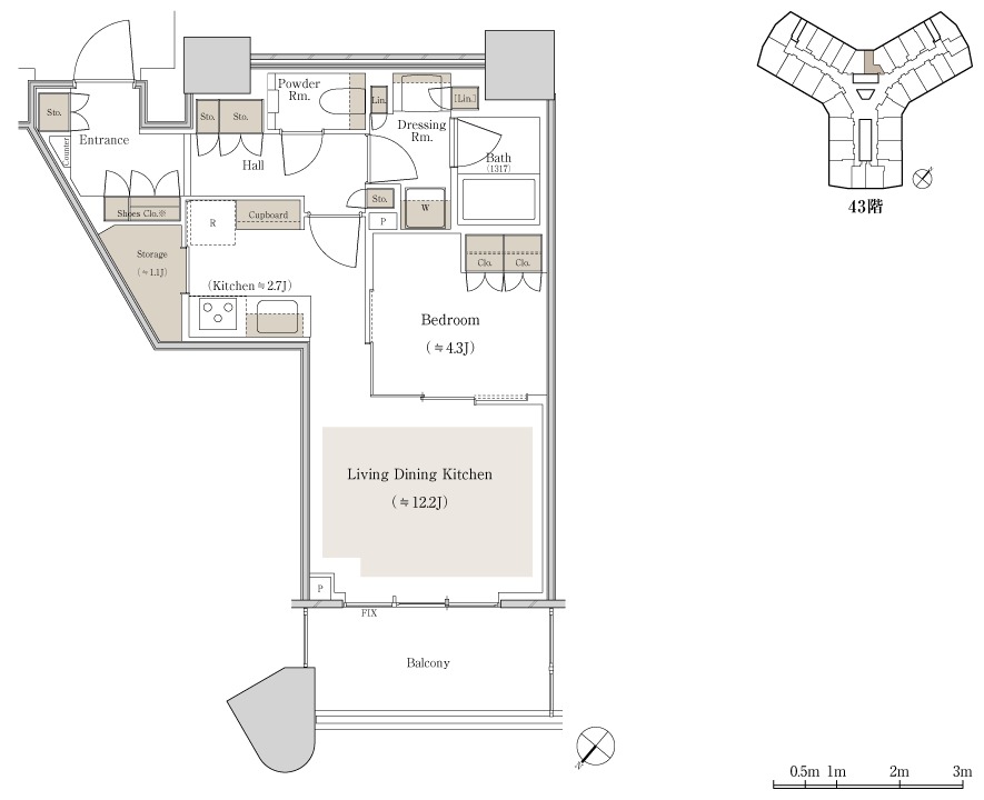 ¡¡17³¬¤ËÇÛÃÖ¤µ¤ì¤ëM-45Ae¥¿¥¤¥×¤Î´Ö¼è¤ê¿Þ¤Ç¤¹¡£´Ö¼è¤ê¤Ï1LDK+SIC+TR¡¢ÀìÍÌÌÀѤÏ45.42Ö¡¢¥Ð¥ë¥³¥Ë¡¼ÌÌÀѤÏ12.50Ö¡¢¥È¥é¥ó¥¯¥ë¡¼¥àÌÌÀÑ1.40֤ȤʤäƤ¤¤Þ¤¹¡£