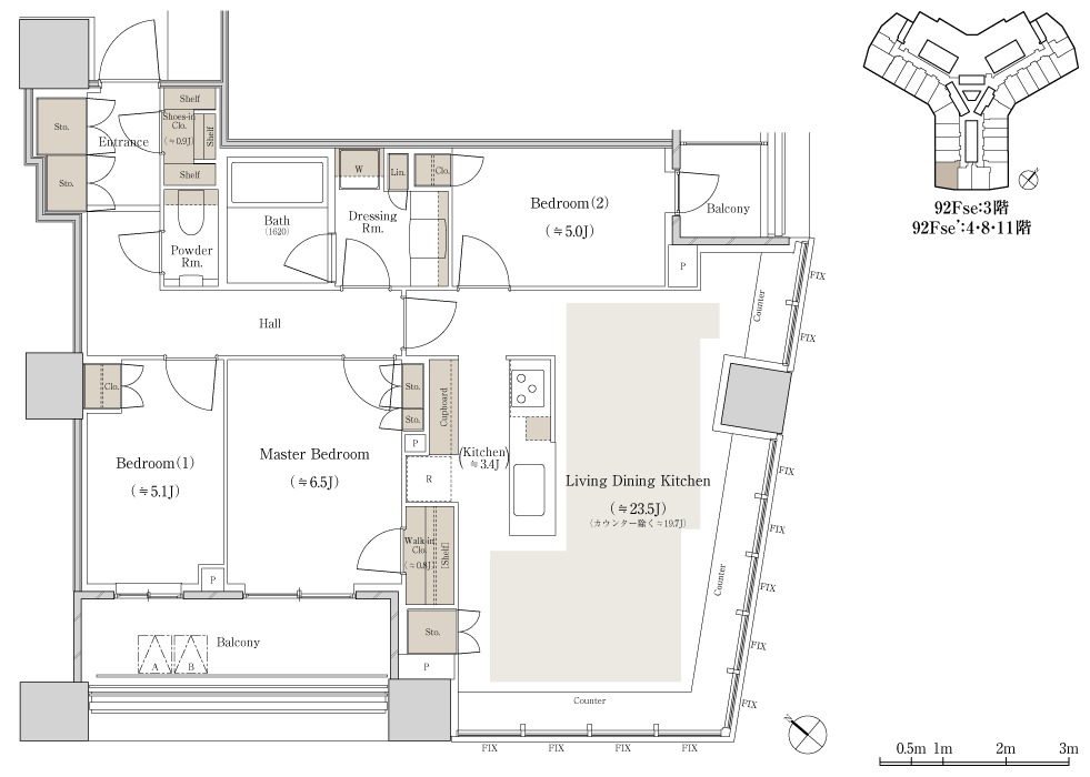 ¡¡3³¬¤ËÇÛÃÖ¤µ¤ì¤ëSS-92Fse¥¿¥¤¥×¤Î´Ö¼è¤ê¿Þ¤Ç¤¹¡£´Ö¼è¤ê¤Ï3LDK+WIC+SIC¡¢ÀìÍÌÌÀѤÏ92.88Ö¡¢¥Ð¥ë¥³¥Ë¡¼ÌÌÀѤÏ11.30֤ȤʤäƤ¤¤Þ¤¹¡£