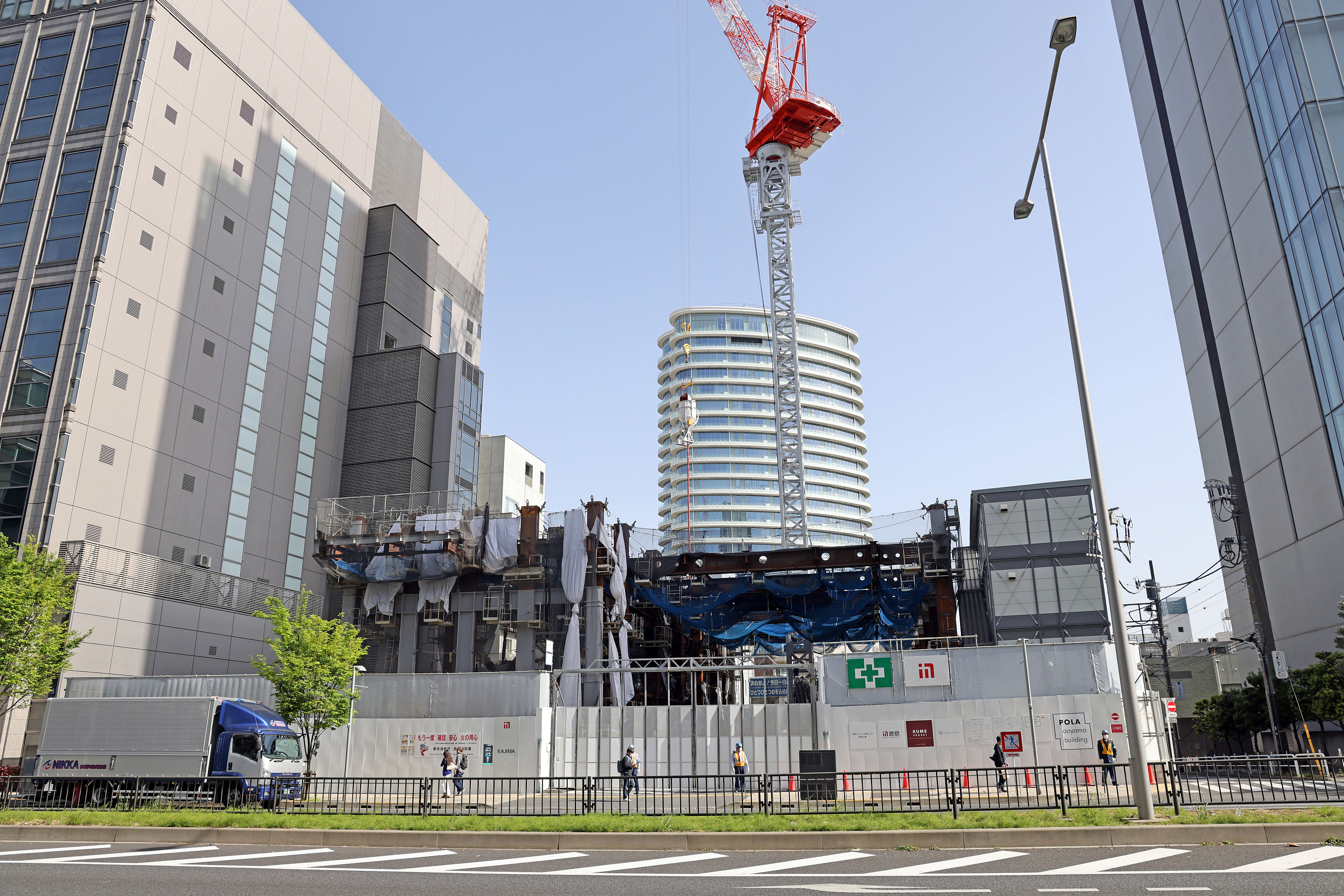 ¡¡2023ǯ4·î13Æü¤ËÀÄ»³Ä̤ê±è¤¤¤«¤é»£±Æ¤·¤¿¡ÖPOLAÀÄ»³¥Ó¥ë¥Ç¥£¥ó¥°¡×(ÃϾå16³¬¡¢¹â¤µ86.5m)¤Î·úÀßÃϤǤ¹¡£ÄãÁØÉô¤ÎÅ´¹ü¤¬ÁÈ¤Þ¤ì¤Æ»Ï¤á¤Æ¤¤¤Þ¤·¤¿¡£