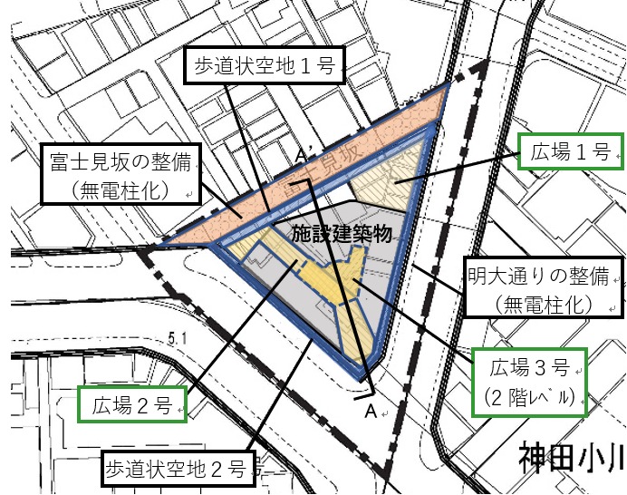 ¡¡·×²èÃϱ¦Â¦¤Î¥Ó¥ë¤¬¡ÖÌÀ¼£Âç³Ø¥ê¥Ð¥Æ¥£¥¿¥ï¡¼¡×(ÃϾå23³¬¡¢¹â¤µ118.95m)¡¢º¸²¼¤¬¡Ö¿ÀÅÄ¥¹¥¯¥¨¥¢¡ÊKANDA SQUARE¡Ë¡×(ÃϾå21³¬¡¢ºÇ¹â¹â¤µ120.85m)¤Ç¡¢Æ±ºÆ³«È¯¤Ï¤³¤ì¤é¤è¤ê¤â¾¯¤·¤À¤±Ä㤤ʣ¹ç»ÜÀߤˤʤê¤Þ¤¹¡£