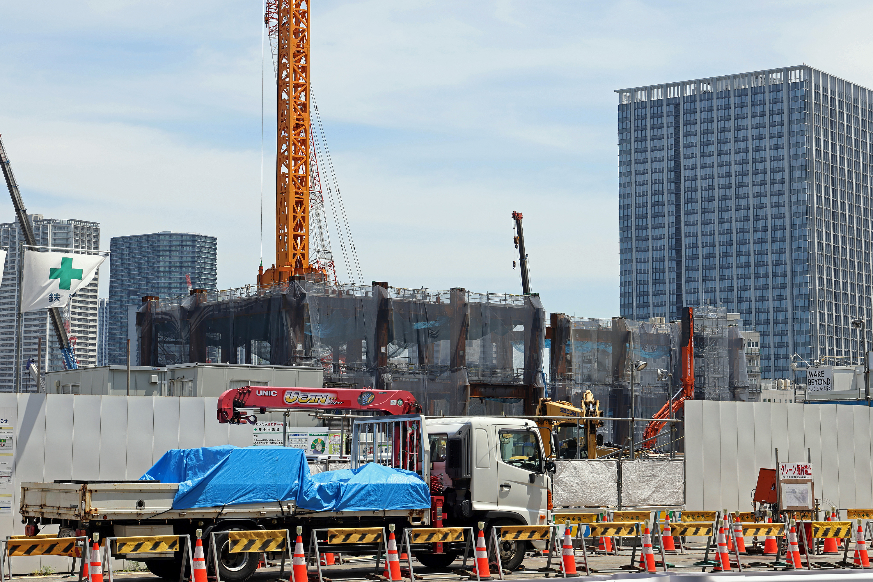 ¡¡JR¡Ö¹âÎØ¥²¡¼¥È¥¦¥§¥¤¡×±Ø¥¨¥ê¥¢¤ÎÂ絬ÌϺƳ«È¯¡ÖTAKANAWA GATEWAY CITY Ê£¹çÅï¶¡×(ÃϾå31³¬¡¢¹â¤µ166.86m)¤Î·úÀßÃϤǤ¹¡£2023ǯ6·î7Æü¤Ë»£±Æ¤·¤Þ¤·¤¿¡£ÄãÁØÉô¤Ë¾¦¶È»ÜÀߤ¬Æþ¤ë20ËüÖͤ¨¤ÎÂ絬ÌÏ¥ª¥Õ¥£¥¹¥Ó¥ë¤Ç¡¢¹âÎØÃÛÄé¤Î°ä¹½¤ò¸«³Ø¤Ç¤¤ë¥¹¥Ú¡¼¥¹¤âÀߤ±¤é¤ì¤Þ¤¹¡£¤³¤Îµ»ö¤Ç¤ÏƱºÆ³«È¯¤Î³µÍפä·úÀß¾õ¶·¡¢ÃÏ¿ÞÅù¤òºÜ¤»¤Æ¤¤¤Þ¤¹¡£