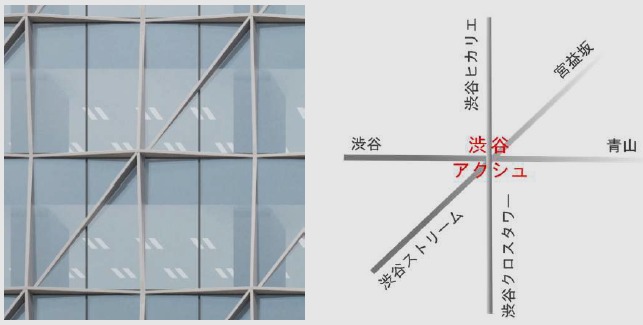 ¡¡½Âë¤Î½ÂëÆóÃúÌÜ17Ã϶è¤Ç·úÀßÃæ¤Î¡Ö½Â륢¥¯¥·¥å¡ÊSHIBUYA AXSH¡Ë¡×(ÃϾå23³¬¡¢¹â¤µ122.86m)¤Ç¤¹¡£2023ǯ7·î7Æü¤Ë»£±Æ¤·¤Þ¤·¤¿¡£ÄãÁØÉô¤Ë¾¦¶È»ÜÀߤ¬Æþ¤ë¥ª¥Õ¥£¥¹¥Ó¥ë¤Ç¡Ö½Âë¥Ò¥«¥ê¥¨¡×¤È¡Ö½Â륯¥í¥¹¥¿¥ï¡¼¡×¤Ë¥Ç¥Ã¥¤ÇÀܳ¤·¤Þ¤¹¡£¤³¤Îµ»ö¤Ç¤ÏƱ¥Ó¥ë¤Î³µÍפä·úÀß¾õ¶·¡¢ÃÏ¿ÞÅù¤òºÜ¤»¤Æ¤¤¤Þ¤¹¡£
