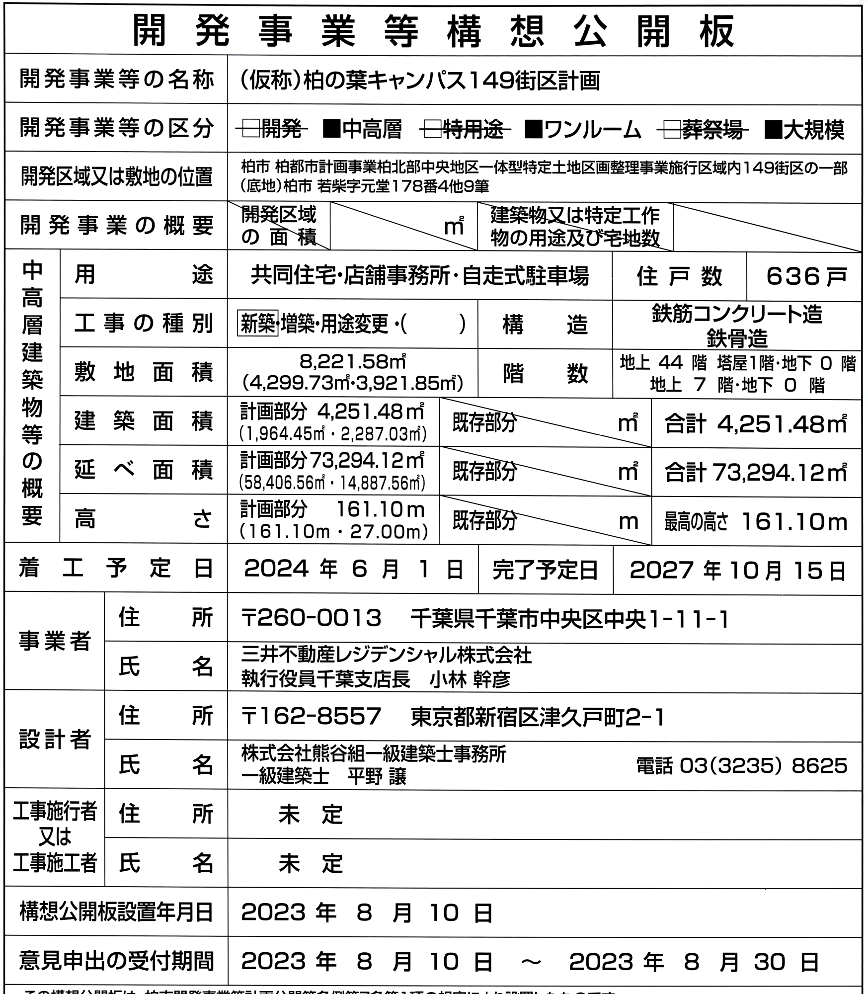 ¡¡¡Ö(²¾¾Î)Çð¤ÎÍÕ¥¥ã¥ó¥Ñ¥¹149³¹¶è·×²è¡×¤Ï¤Ä¤¯¤Ð¥¨¥¯¥¹¥×¥ì¥¹¡ÖÇð¤ÎÍÕ¥¥ã¥ó¥Ñ¥¹¡×±Ø¤ÎËÌÅ즤Î149³¹¶è¤ÎºÆ³«È¯¤Ç¡¢µ¬ÌϤÏÃϾå44³¬¡¢Åã²°1³¬¡¢¹â¤µ161.10m¡¢ÉßÃÏÌÌÀÑ8,221.58Ö¡¢·úÃÛÌÌÀÑ4,251.48Ö¡¢±ä¾²ÌÌÀÑ7Ëü3294.12Ö¡¢Áí¸Í¿ô636¸Í¤È¤Ê¤Ã¤Æ¤¤¤Þ¤¹¡£·úÃÛ¼ç¤Ï»°°æÉÔÆ°»º¥ì¥¸¥Ç¥ó¥·¥ã¥ë¡¢À߷׼ԤϷ§Ã«ÁȤÇ2024ǯ6·î1ÆüÃ幩¡¢2027ǯ10·î15Æü¤Î½×¹©Í½Äê¤Ç¤¹¡£