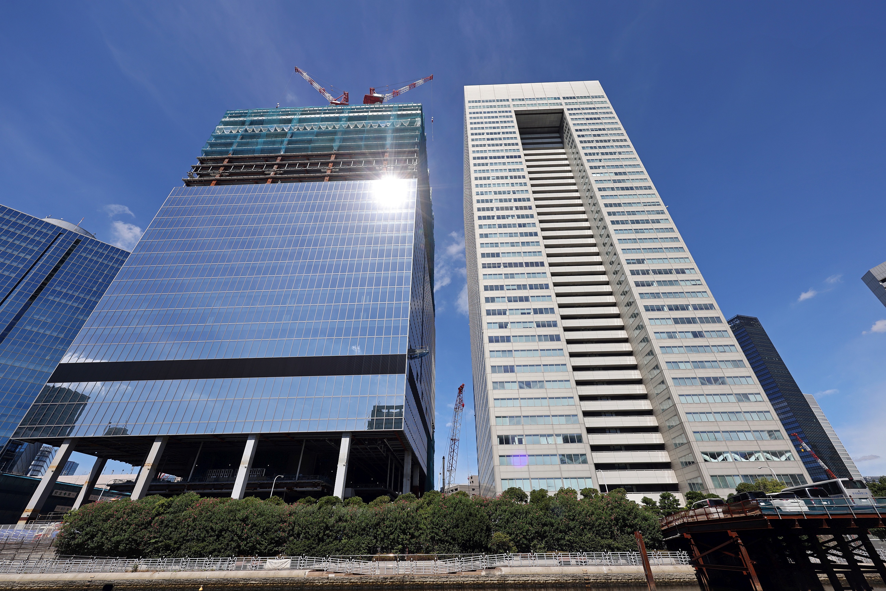 ¡¡¡Ö¼Ç±º¥×¥í¥¸¥§¥¯¥È¡×¤ÏÆüËܺÇÂ絬ÌϤΥĥ¤¥ó¥¿¥ï¡¼¤È¤Ê¤ë¡ÖÉ;¾Ä®¥Ó¥ë¥Ç¥£¥ó¥°(Åì¼Ç¥Ó¥ë¥Ç¥£¥ó¥°)¡×(ÃϾå40³¬¡¢¹â¤µ165.9m)¤Î·úÂØ¤¨¤Ç¤¹¡£±¦¤¬¸½ºß·úÀßÃæ¤ÎÃϾå43³¬¡¢¹â¤µ228.88m¤Îµ´üSÅï¡¢º¸¤¬SÅï´°À®¸å¤Ë·úÀߤ¬»Ï¤Þ¤ëÃϾå45³¬¡¢¹â¤µ227.28m¤Î¶´üNÅï(º¸)¤È¤Ê¤Ã¤Æ¤¤¤Þ¤¹¡£