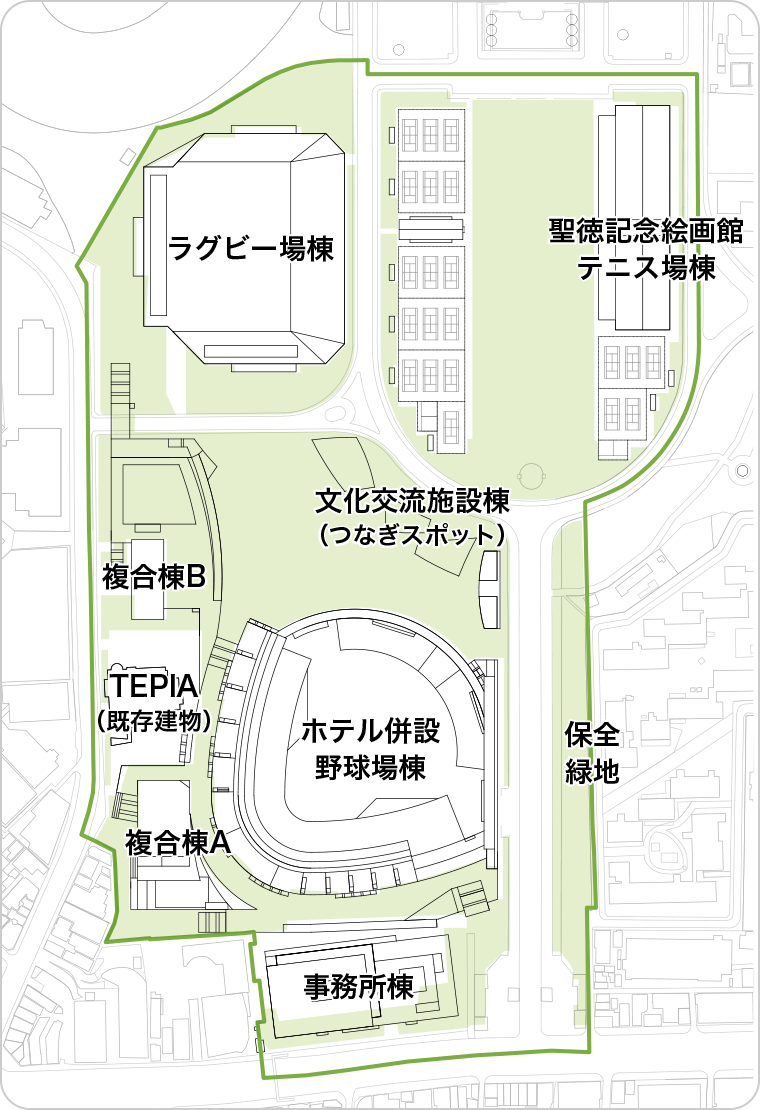 ¡¡ºÆ³«È¯Á°¤Î¸½¶·¿Þ¤Ç¤¹¡£Ìîµå¾ì¤ä¥é¥°¥Ó¡¼¾ì¡¢¥Æ¥Ë¥¹¥³¡¼¥È¡¢°ËÆ£Ã龦»öÅìµþËܼҥӥë¤Ê¤É¤¬¤¢¤ë°ìÂÓ¤¬·×²èÃϤȤʤäƤ¤¤Þ¤¹¡£