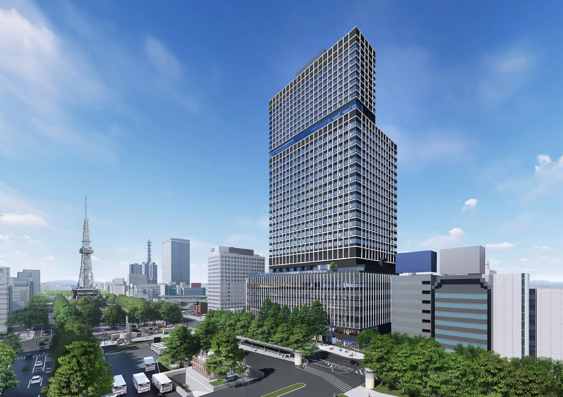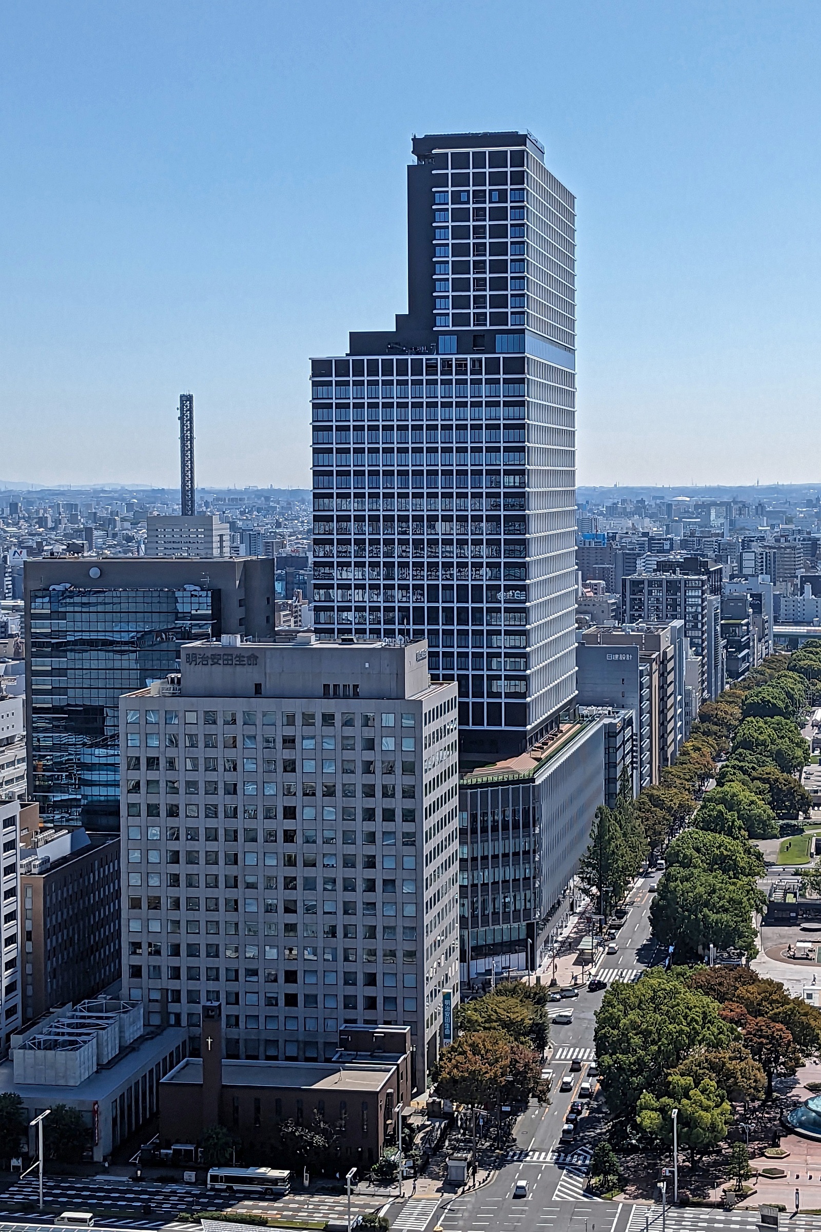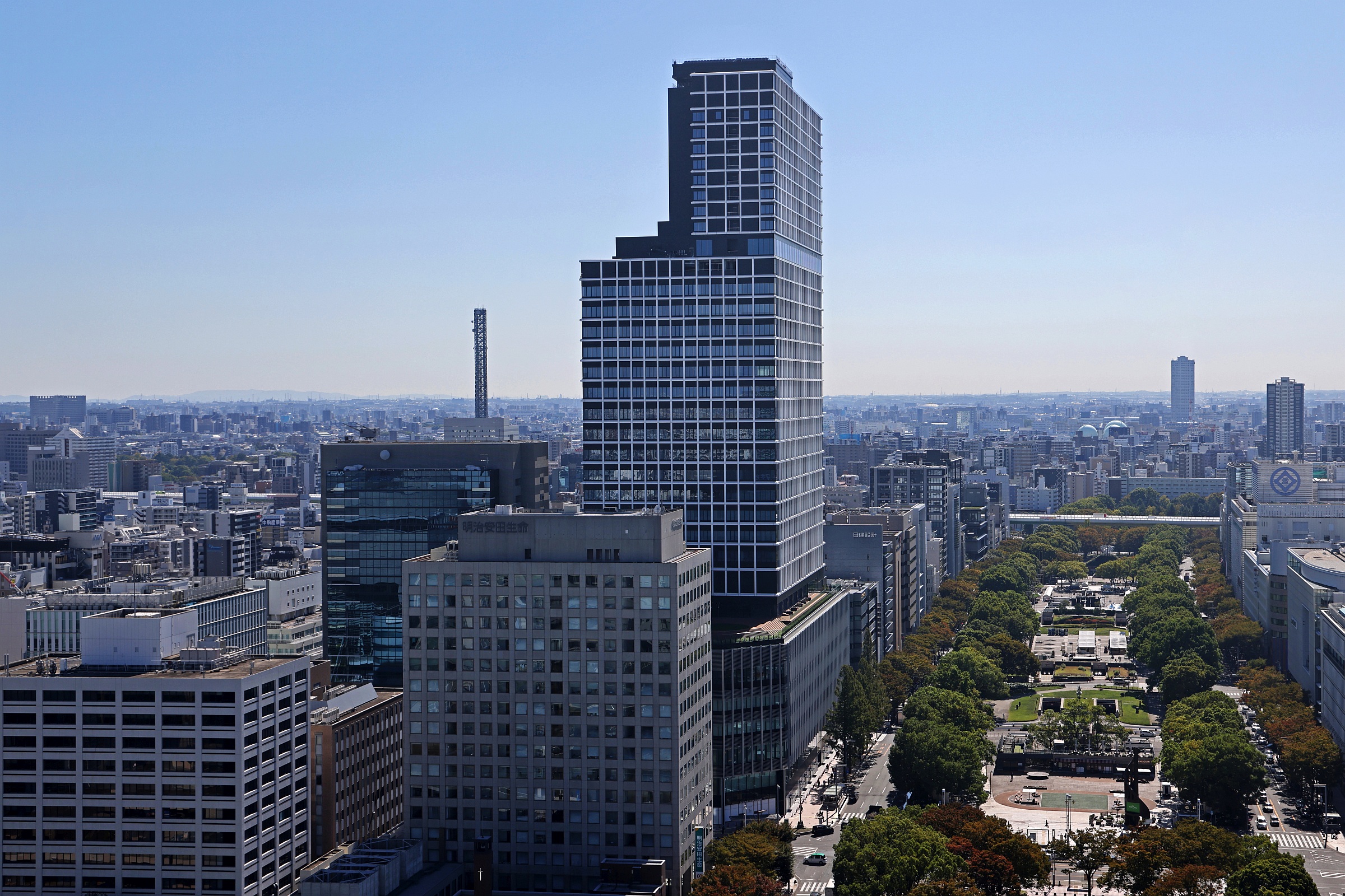 ¡¡Ì¾¸Å²°¤Î±É¤Ë·úÀߤµ¤ì¤¿¡ÖÃæÆü¥Ó¥ë¡×(ÃϾå33³¬¡¢¹â¤µ158.877m)¤Ç¤¹¡£2023ǯ10·î18Æü¤Ë»£±Æ¤·¤Þ¤·¤¿¡£¾¦¶È»ÜÀß¡¢¥ª¥Õ¥£¥¹¡¢¥¶ ¥í¥¤¥ä¥ë¥Ñ¡¼¥¯¥Û¥Æ¥ë ¥¢¥¤¥³¥Ë¥Ã¥¯Ì¾¸Å²°¤Ç¹½À®¤µ¤ì¤ëÊ£¹ç»ÜÀߤǡ¢2023ǯ8·î1Æü¤Ë½×¹©¼°¤¬¹Ô¤ï¤ì¤Þ¤·¤¿¡£º£¸å¤Ïº£¸å¥Æ¥Ê¥ó¥ÈÆâÁõ¹©»ö¤¬¹Ô¤ï¤ì¡¢2024ǯ½Õ¤ËÁ´Ì̳«¶ÈͽÄê¤È¤Ê¤Ã¤Æ¤¤¤Þ¤¹¡£¤³¤Îµ»ö¤Ç¤ÏƱ¥Ó¥ë¤Î³µÍפä·úÀß¾õ¶·¡¢ÃÏ¿ÞÅù¤òºÜ¤»¤Æ¤¤¤Þ¤¹¡£