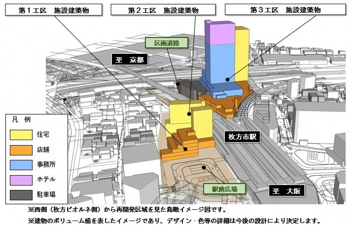 ¡¡Âçºå¤ÎµþºåÅÅÅ´ËÜÀþ¡ÖËçÊý»Ô¡×±ØÁ°¤ÎÂ絬ÌϺƳ«È¯¡ÖËçÊý»Ô±Ø¼þÊÕÃ϶èÂè°ì¼ï»Ô³¹ÃϺƳ«È¯»ö¶È 3¹©¶è¡×¤Î·úÀßÃϤǤ¹¡£2023ǯ10·î24Æü¤Ë»£±Æ¤·¤Þ¤·¤¿¡£º¸¤¬ÃϾå29³¬¡¢¹â¤µ109m¤ÎÄÂÂߥ¿¥ï¥Þ¥ó¡ÖTHE TOWER HIRAKATA¡×¤Ç¡¢±¦¤¬ÃϾå26³¬¡¢¹â¤µ126.70m¤Î¥ª¥Õ¥£¥¹¤È¥Û¥Æ¥ë¡Ö¥«¥ó¥Ç¥ª¥Û¥Æ¥ë¥ºËçÊý(²¾¾Î)¡×¤Ë¤Ê¤ê¤Þ¤¹¡£¤³¤Îµ»ö¤Ç¤ÏƱºÆ³«È¯¤Î³µÍפä·úÀß¾õ¶·¡¢ÃÏ¿ÞÅù¤òºÜ¤»¤Æ¤¤¤Þ¤¹¡£
