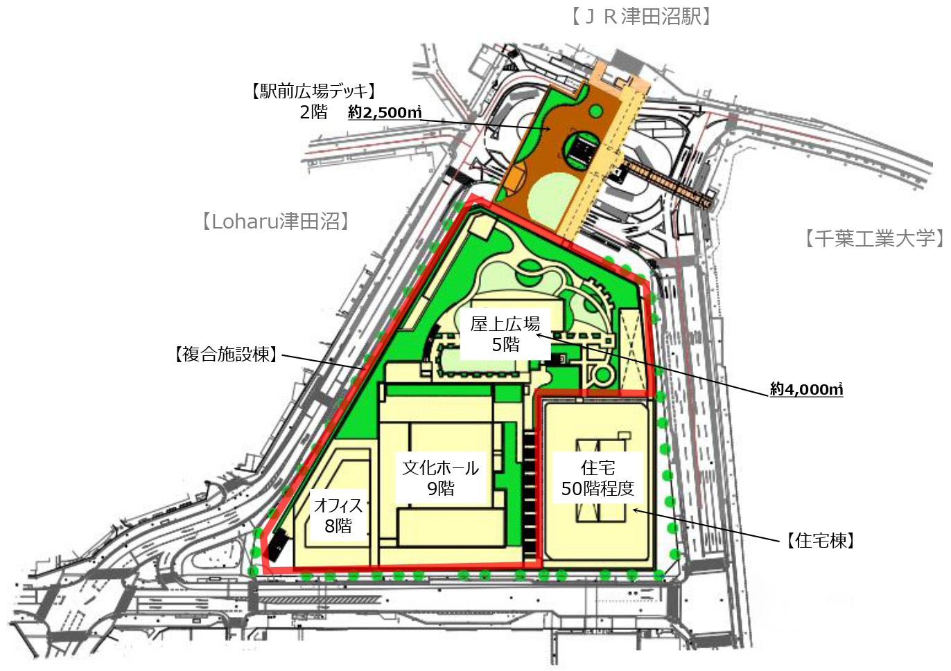 ¡¡JRÄÅÅÄ¾Â±Ø¤ÎÆî¸ýÁ°¤Î2³¬¤Ë¤ÏÌó2,500֤αØÁ°¹¾ì¥Ç¥Ã¥¤¬À°È÷¤µ¤ì¡¢¤½¤Î¥Ç¥Ã¥¤ÎÀè¤ËÌó4,000֤β°¾å¹¾ì¤â¤¢¤ë¾¦¶È»ÜÀߤ¬ÇÛÃÖ¤µ¤ì¡¢¤½¤Î¾å¤Ë¥ª¥Õ¥£¥¹¤Èʸ²½¥Û¡¼¥ë¤¬ÇÛÃÖ¤µ¤ì¤Þ¤¹¡£¤½¤·¤ÆÉßÃÏÆîÅ즤Ë50³¬ÄøÅ٤Υ¿¥ï¡¼¥Þ¥ó¥·¥ç¥ó¤¬·×²è¤µ¤ì¤Æ¤¤¤Þ¤¹¡£