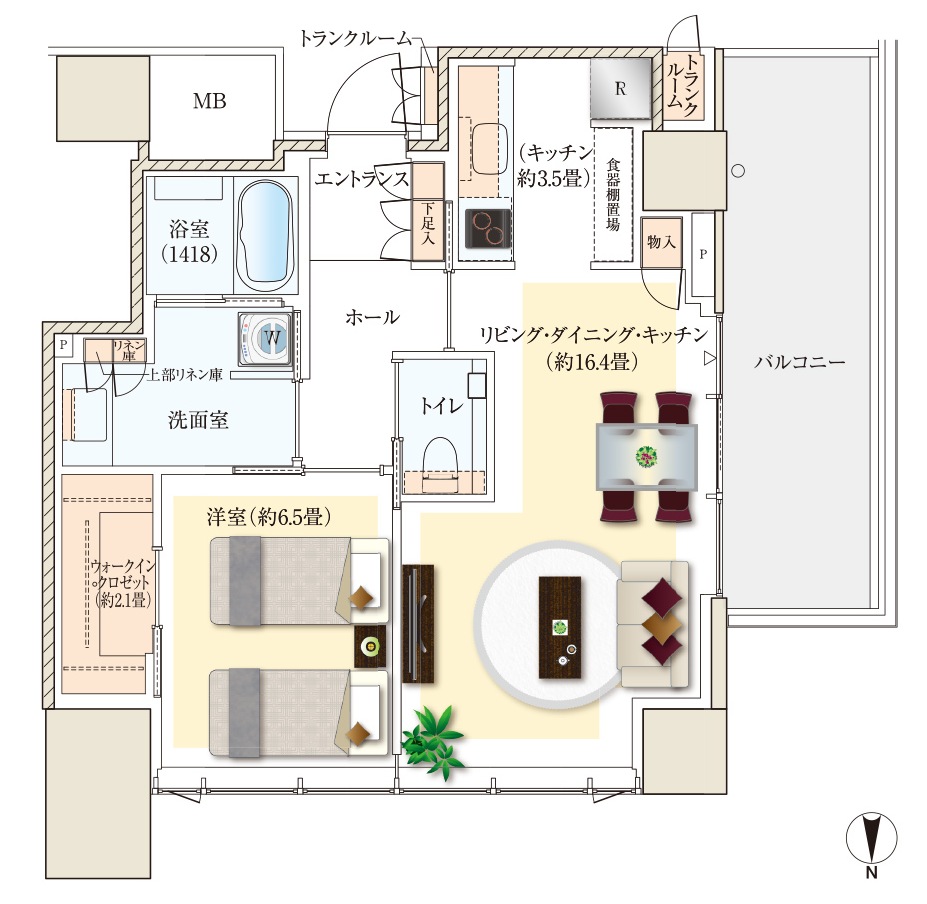 ¡¡104B¥¿¥¤¥×¤Î´Ö¼è¤ê¿Þ¤Ç¤¹¡£´Ö¼è¤ê¤Ï2LDK+2WIC+N+P¡¢ÀìÍÌÌÀѤÏ104.09Ö(¥È¥é¥ó¥¯¥ë¡¼¥àÌÌÀÑ2.47Ö´Þ¤à)¡¢¥Ð¥ë¥³¥Ë¡¼ÌÌÀѤÏ17.05֤ȤʤäƤ¤¤Þ¤¹¡£