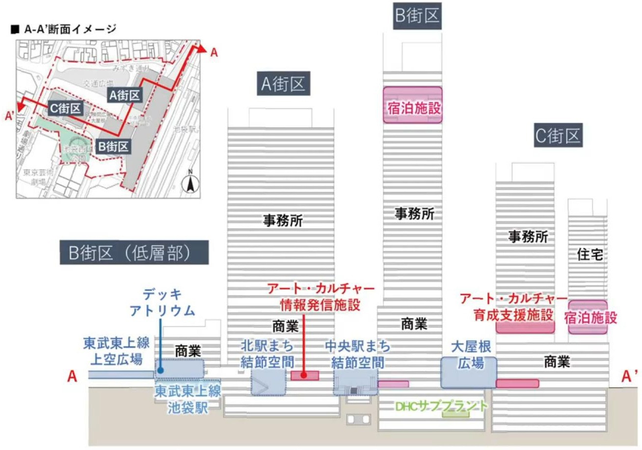¡¡A³¹¶è¤ÏÄãÁØÉô¤Ë¾¦¶È»ÜÀߤ¬Æþ¤ë͹âÁØ¥ª¥Õ¥£¥¹¥Ó¥ë¡¢B³¹¶è¤ÏÄãÁØÉô¤Ë¾¦¶È»ÜÀß¡¢¹âÁØÉô¤Ë½ÉÇñ»ÜÀߤ¬Æþ¤ë͹âÁØ¥ª¥Õ¥£¥¹¥Ó¥ë¡¢C³¹¶è¤ÏÄãÁØÉô¤Ë¾¦¶È»ÜÀß¡¢Ãæ¹âÁØÉô¤Ë¥ª¥Õ¥£¥¹¤È¥Û¥Æ¥ë¡¦¶¦Æ±½»Âð¤¬Æþ¤ëÊ£¹ç»ÜÀߤˤʤ뤳¤È¤¬ÁÛÄꤵ¤ì¤Æ¤¤¤Þ¤¹¡£·úʪÄãÁØÉô¤Ë¤Ï±Ø¤ÈÀܳ¤¹¤ë¥¢¥È¥ê¥¦¥à¶õ´Ö¤òÀߤ±¡¢±Ø¤«¤é³¹¤Ø¿Í¤òÁ÷¤ê½Ð¤¹±Ø¤Þ¤Á·ëÀá¶õ´Ö¤¬À°È÷¤µ¤ì¡¢B³¹¶è¤ÎÄãÁØÉô¤Ë¤¢¤ëÅìÉðÅì¾åÀþ¡ÖÃÓÂޡױؤÏ1ÀþÁýÀþ¤·¤Æ4Àþ²½¤¹¤ë²þÎɹ©»ö¤â¹Ô¤ï¤ì¤Þ¤¹¡£Â¾¤Ë¤â¥¢¡¼¥È¡¦¥«¥ë¥Á¥ã¡¼¾ðÊóȯ¿®»ÜÀߤ䥢¡¼¥È¡¦¥«¥ë¥Á¥ã¡¼°éÀ®»Ù±ç»ÜÀߤâ·×²è¤µ¤ì¤Æ¤¤¤Þ¤¹¡£