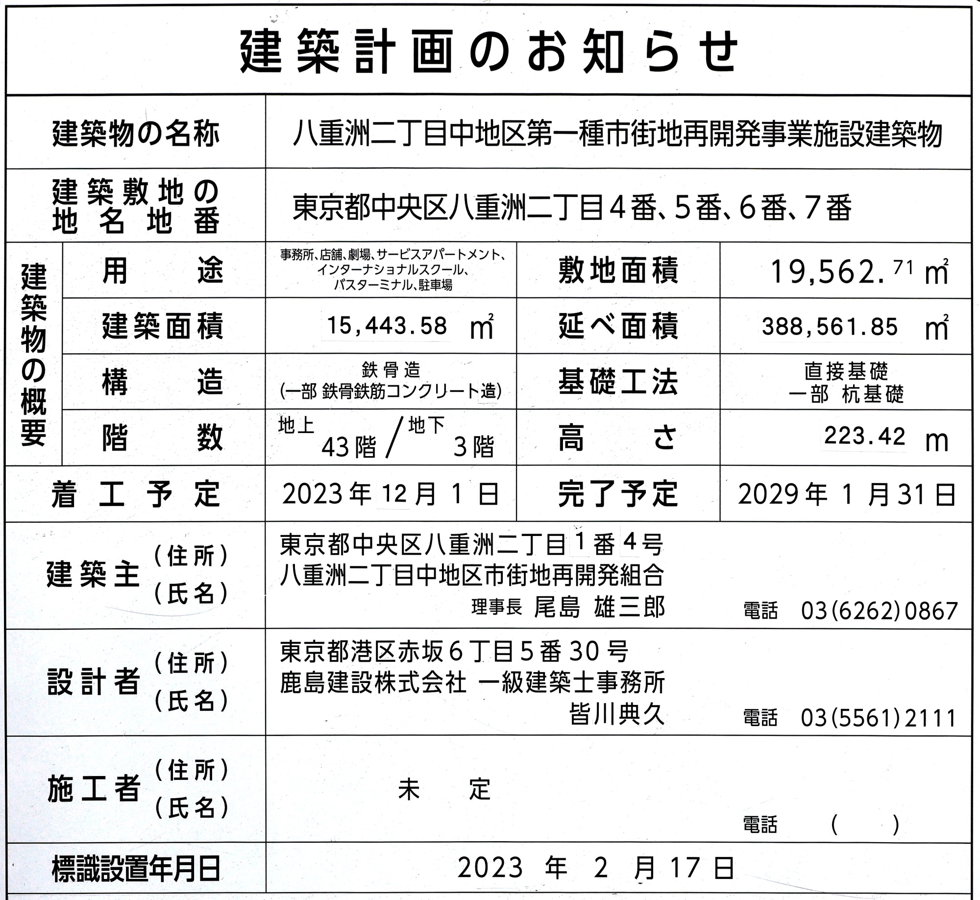 ¡¡2024ǯ1·î27Æü¤ËËÌÀ¾Â¦¤È¤Ê¤ëȬ½Å½§¥°¥é¥ó¥ë¡¼¥Õ¤«¤é»£±Æ¤·¤¿¡ÖȬ½Å½§ÆóÃúÌÜÃæÃ϶èÂè°ì¼ï»Ô³¹ÃϺƳ«È¯»ö¶È¡×(ÃϾå43³¬¡¢¹â¤µ223.42m¡Ë¤Î·×²èÃϤǤ¹¡£·úÃ۷ײè¤Î¤ªÃΤ餻¤Ç¤Ï´û¤ËÃ幩¤·¤Æ¤¤¤ë²Õ½ê¤â¤¢¤ë¤è¤¦¤Ç¤¹¤¬¡¢¼¯Åç·úÀߤò»Ü¹©¼Ô¤È¤·¤Æ2024ǯ7·î31Æü¤Þ¤Ç¤Î¹©´ü¤Ç´û¸·úʪ²òÂι©»ö¤â¹Ô¤ï¤ì¤Æ¤¤¤Þ¤¹¡£