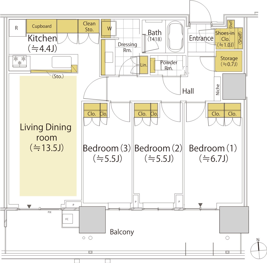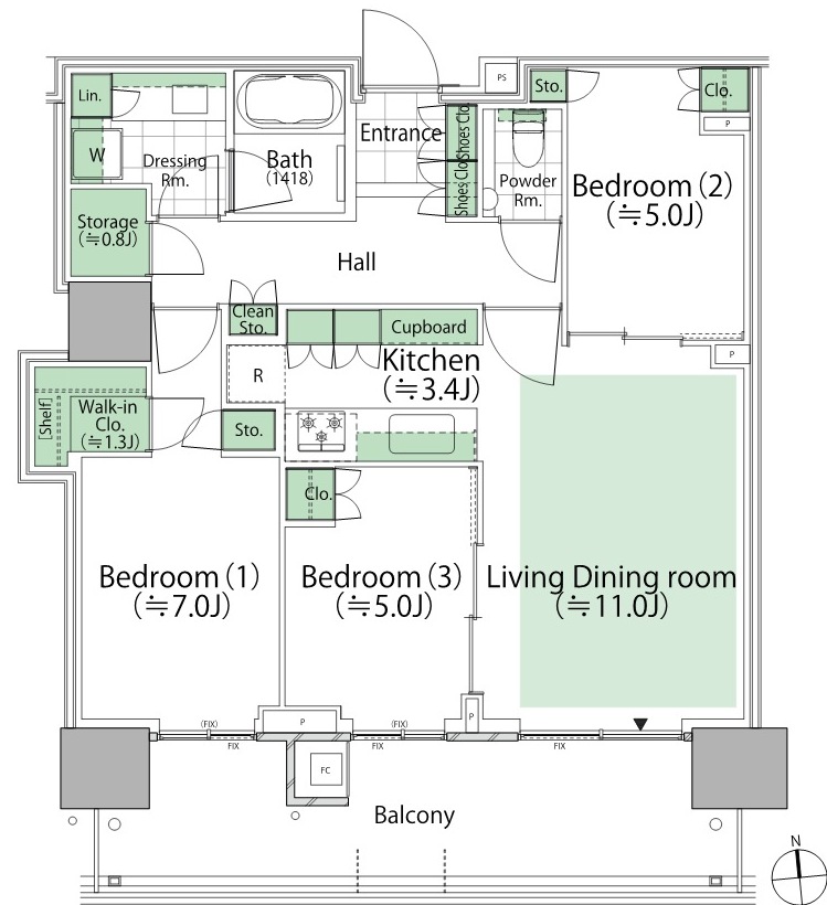 ¡¡PARK VILLAGE TÅï¤ËÇÛÃÖ¤µ¤ì¤ë6TL74¥¿¥¤¥×¤Î´Ö¼è¤ê¿Þ¤Ç¤¹¡£´Ö¼è¤ê¤Ï3LDK+WIC+S¡¢ÀìÍÌÌÀѤÏ74.33Ö¡¢¥Ð¥ë¥³¥Ë¡¼ÌÌÀѤÏ15.66Ö¤Ç3¡Á18³¬¤ËÇÛÃÖ¤µ¤ì¤Þ¤¹¡£