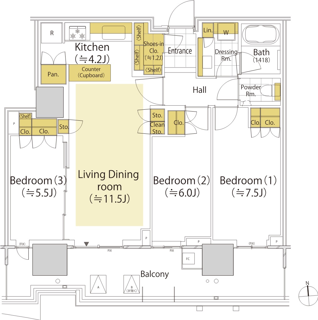 ¡¡SUN VILLAGE TÅï¤ËÇÛÃÖ¤µ¤ì¤ë5TL77¥¿¥¤¥×¤Î´Ö¼è¤ê¿Þ¤Ç¤¹¡£´Ö¼è¤ê¤Ï3LDK+SIC¡¢ÀìÍÌÌÀѤÏ77.85Ö¡¢¥Ð¥ë¥³¥Ë¡¼ÌÌÀѤÏ19.42Ö¡Ê3³¬¡Ë¡¢18.82Ö¡Ê4¡Á30³¬¡Ë¤Ç3¡Á30³¬¤ËÇÛÃÖ¤µ¤ì¤Þ¤¹¡£