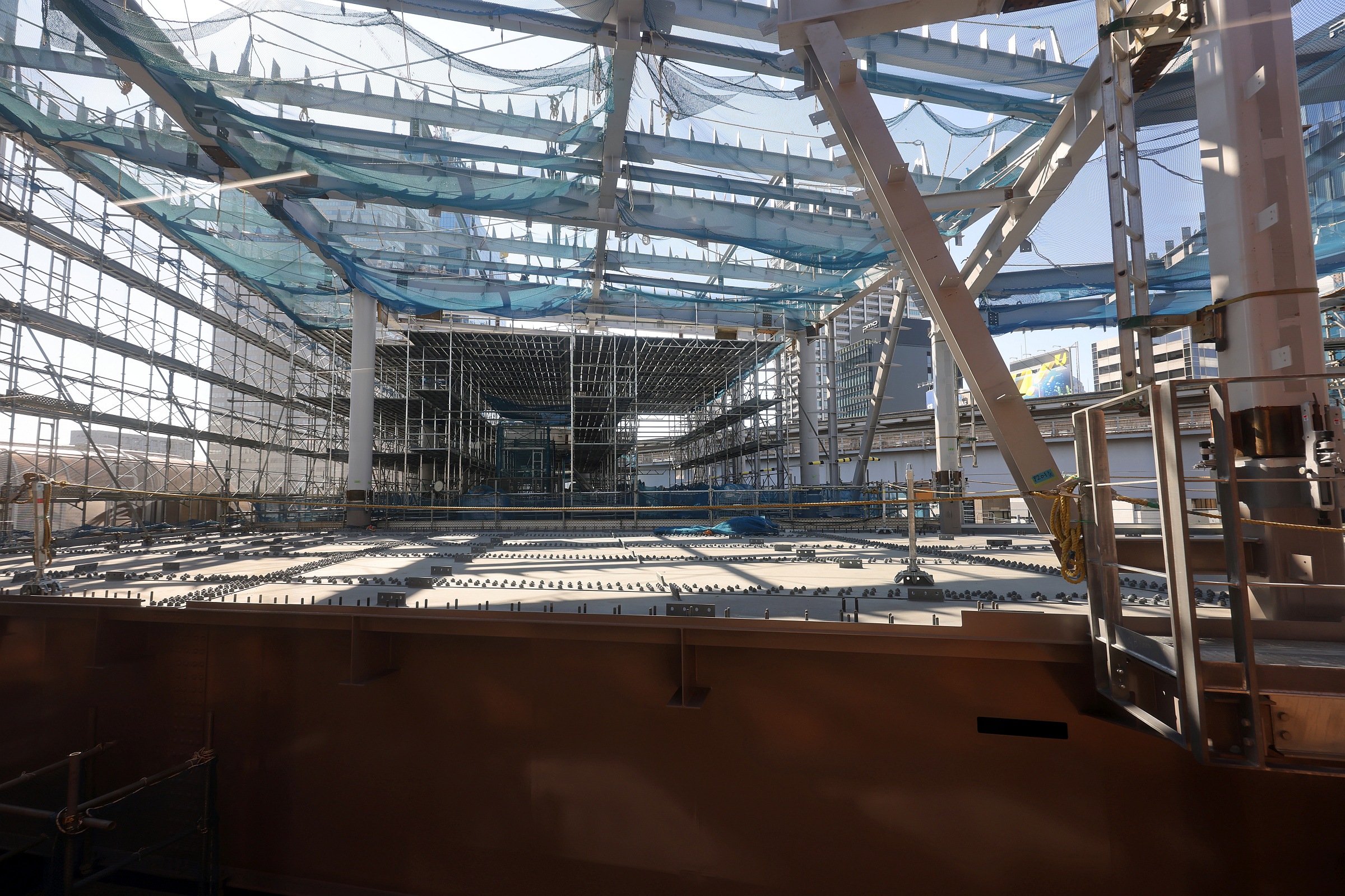 ¡¡Å즤«¤é»£±Æ¡£SÅï´°À®¸å¤Ë¤Ï±¦Â¦¤Ë¸«ÀÚ¤ì¤Æ¤¤¤ë¡ÖÉ;¾Ä®¥Ó¥ë¥Ç¥£¥ó¥°(Åì¼Ç¥Ó¥ë¥Ç¥£¥ó¥°)¡×(ÃϾå40³¬¡¢¹â¤µ165.9m)¤¬¹â¤µÌó230m¤ÎNÅï¤Ë·úÂØ¤¨¤é¤ì¤Þ¤¹¡£¤½¤Î¤È¤¤ËSÅï¤ÈNÅï¤Î´Ö¤Î¡Ö(²¾¾Î)¥»¥ó¥È¥é¥ë¥×¥é¥¶¡×¤ä¼Ç±º±¿²Ï¤Î¥Æ¥é¥¹¤ÈÁ¥Ãå¾ì¤¬À°È÷¤µ¤ì¤Þ¤¹¡£