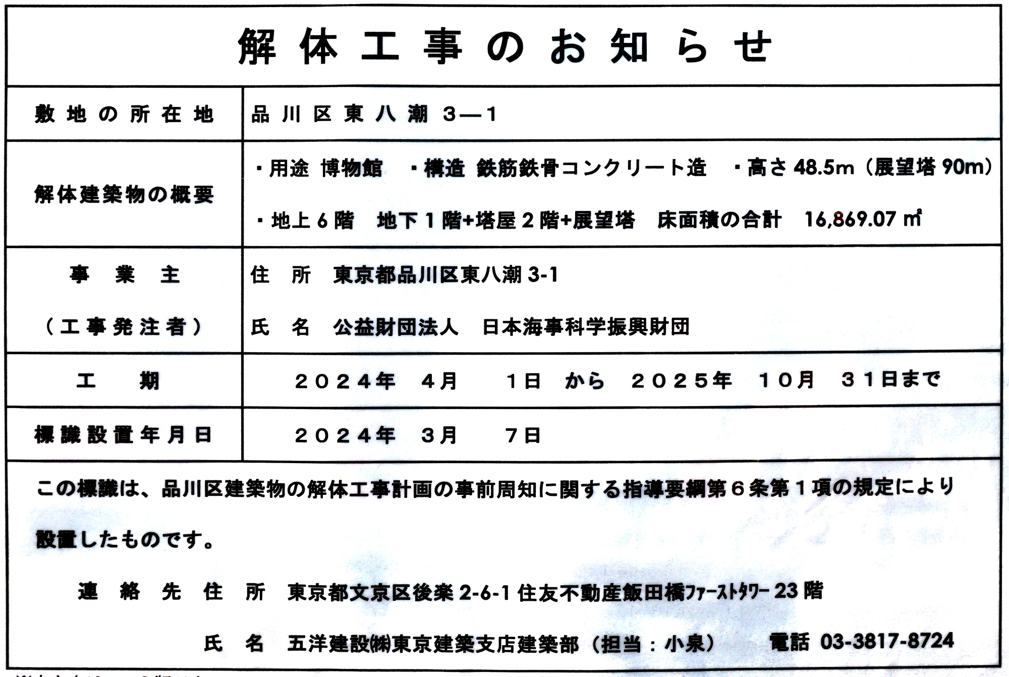 ¡¡¡ÖÁ¥¤Î²Ê³Ø´Û¡×¤Î²òÂι©»ö¤Î¤ªÃΤ餻¤Ç¤¹¡£»ö¶È¼ç¤ÏÆüËܳ¤»ö²Ê³Ø¿¶¶½ºâÃÄ¡¢²òÂι©»ö¤Î»Ü¹©¼Ô¤Ï¸ÞÍηúÀߤǡ¢²òÂι©´ü¤Ï2024ǯ4·î1Æü¤«¤é2025ǯ10·î31Æü¤Þ¤Ç¤È¤Ê¤Ã¤Æ¤¤¤Þ¤¹¡£